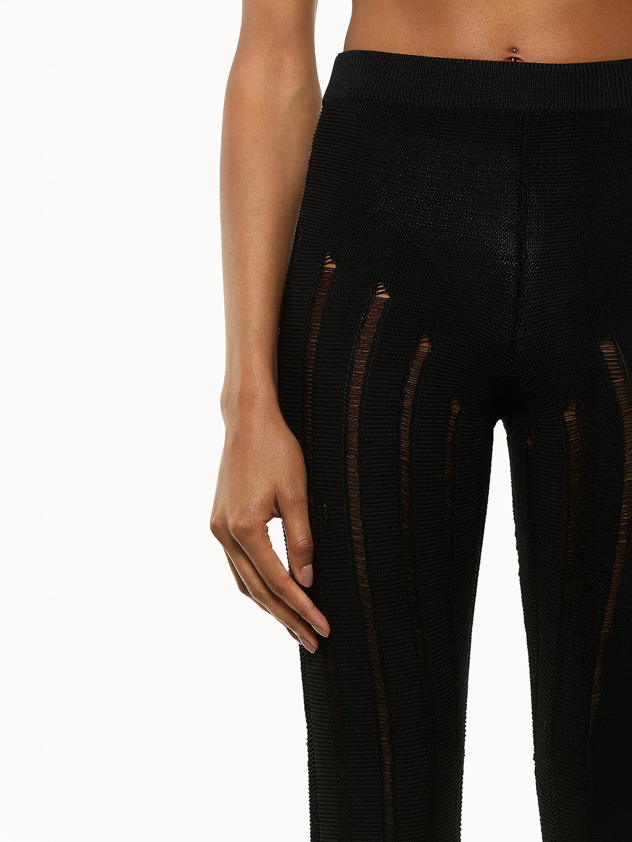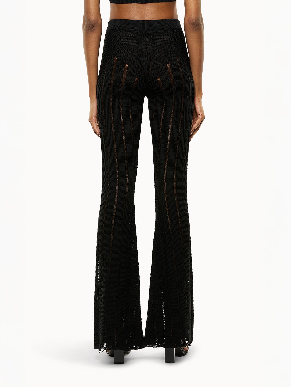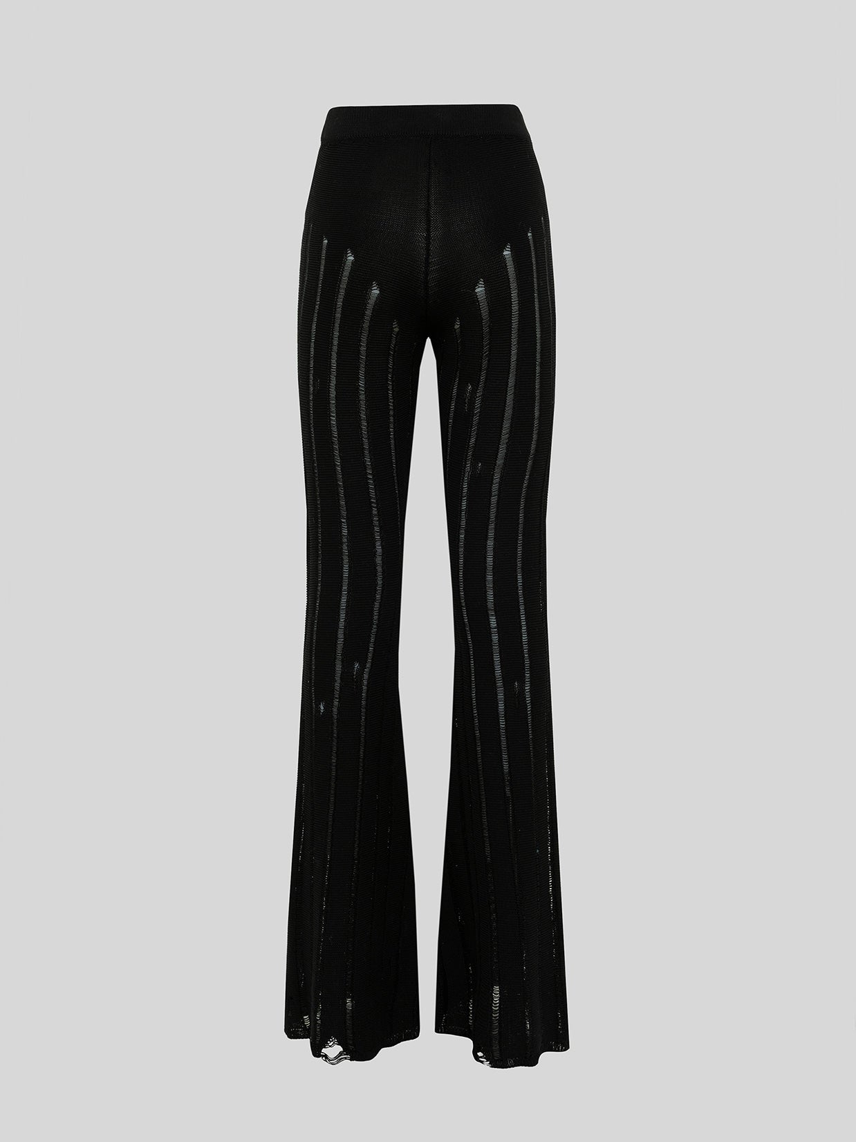 Pantalone in maglia intrecciata con vita alta e vestibilità bootcut. Fondo svasato. Vita elasticizzata per il massimo comfort.