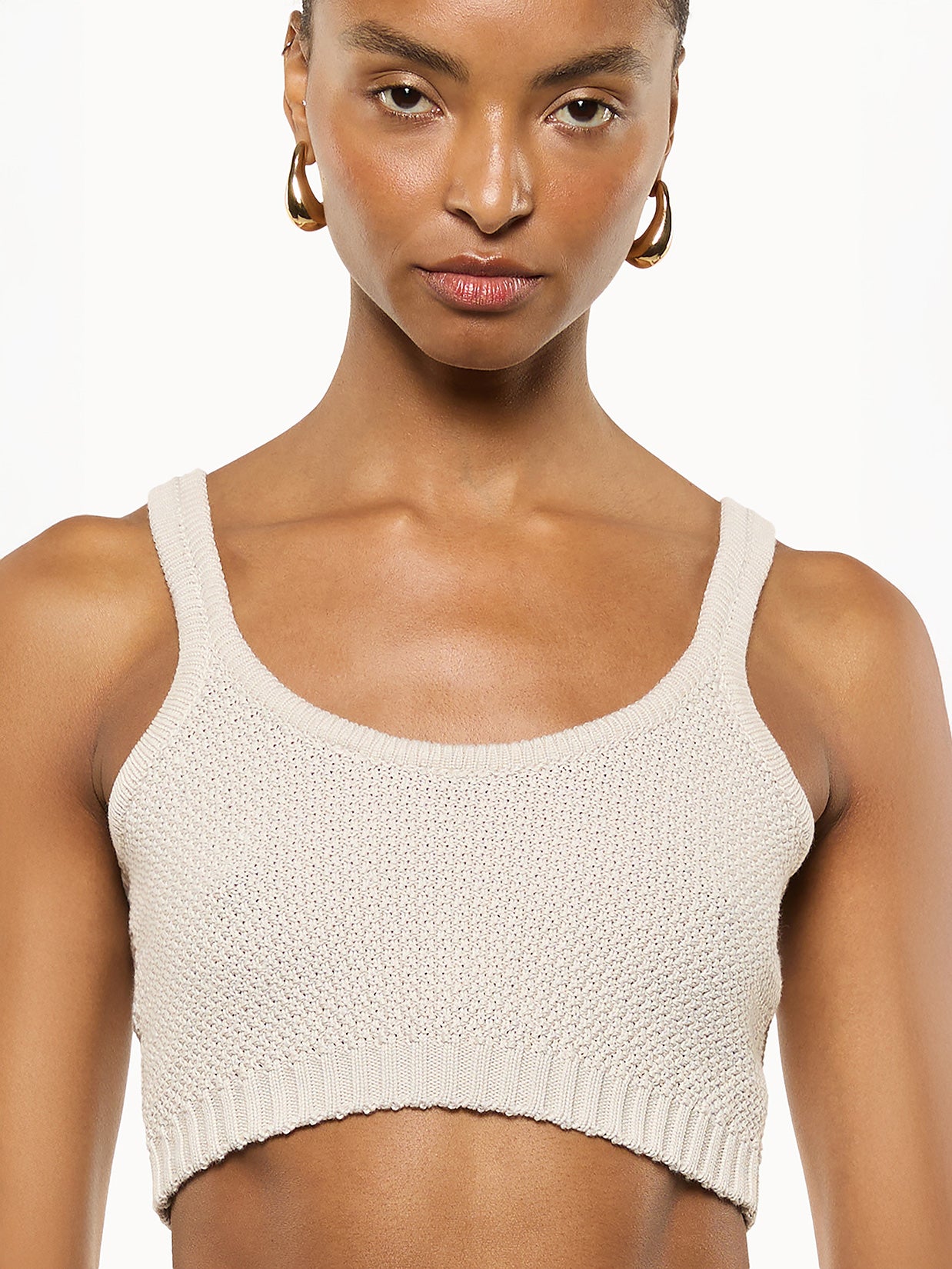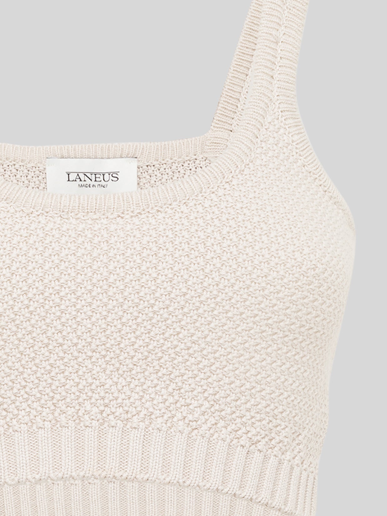 Top crop in maglia di cotone firmato Laneus presenta una vestibilità attillata e spalline sottili. Un capo d’impatto perfetto da solo o in layering. Made in Italy.