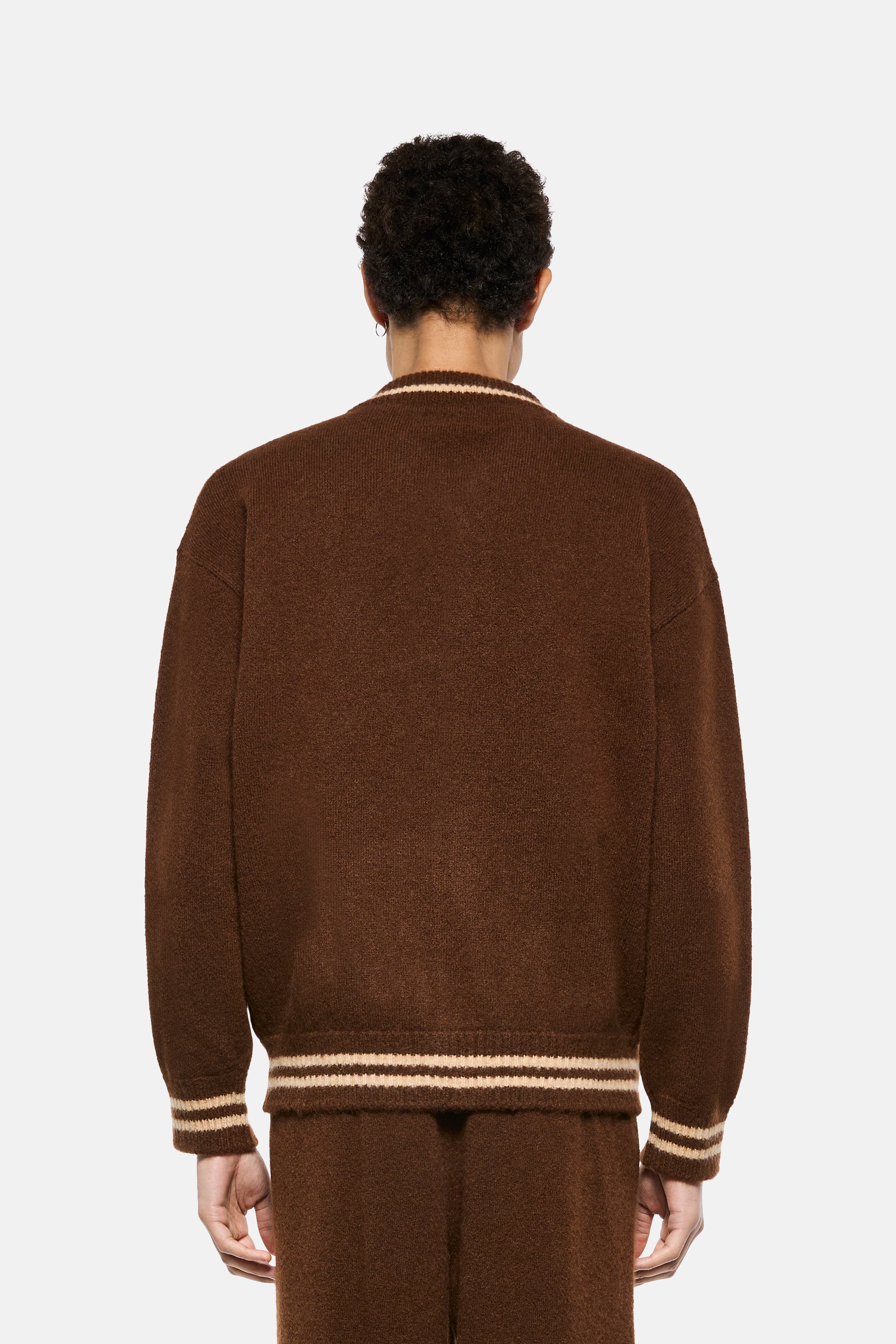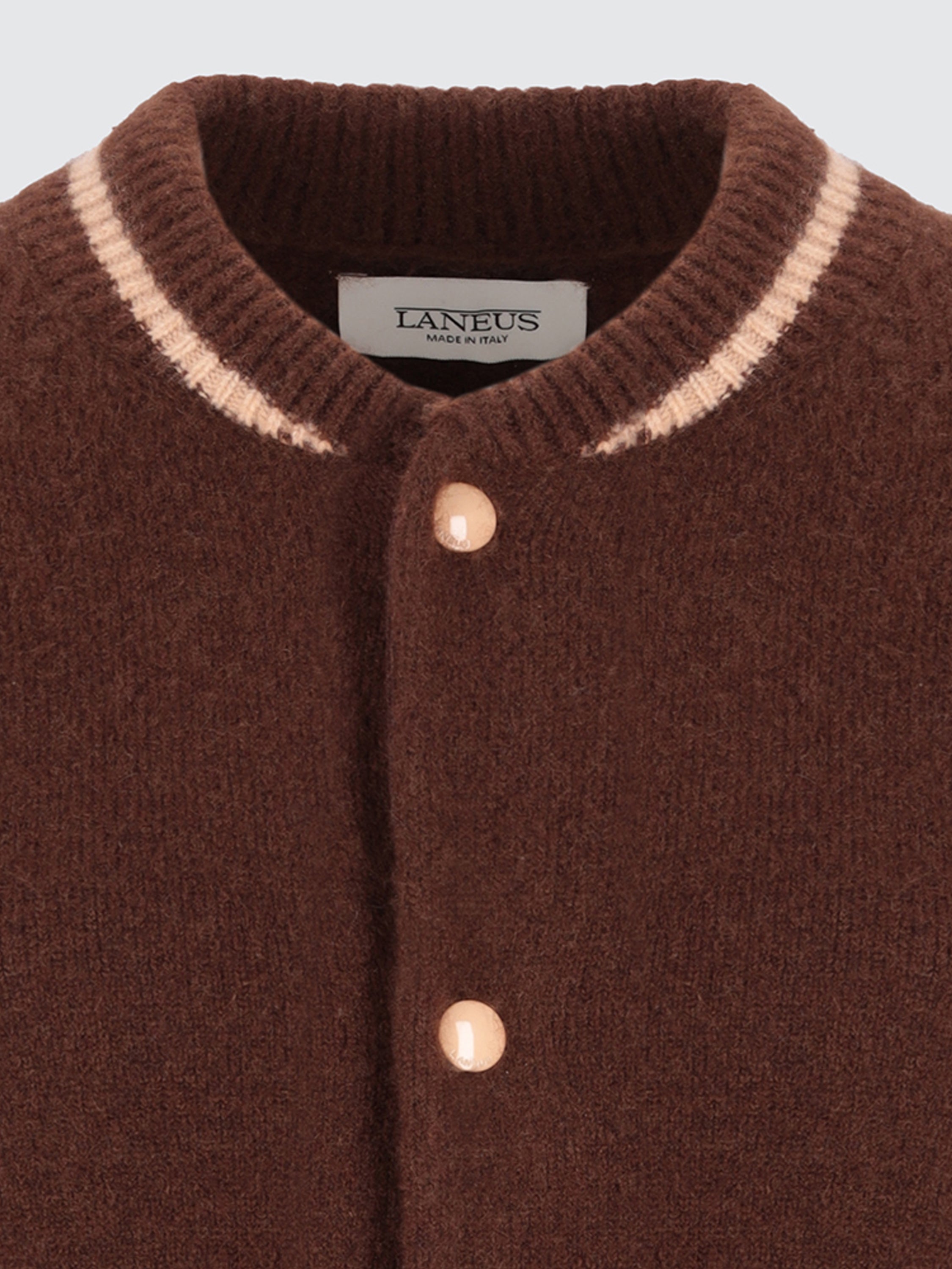 Questo bomber di Laneus rappresenta un capo iconico, lavorato in maglia rasata, realizzato in un pregiato cashmere. Ispirato allo stile college, presenta una vestibilità regular e un design pulito e raffinato. Le tasche a letto aggiungono funzionalità e continuità al look, mentre la chiusura frontale con bottoni snap in tono completa il design in modo pratico e discreto. Arricchito da dettagli a coste in contrasto chiaro su colletto, polsini e fondo. Made in Italy.