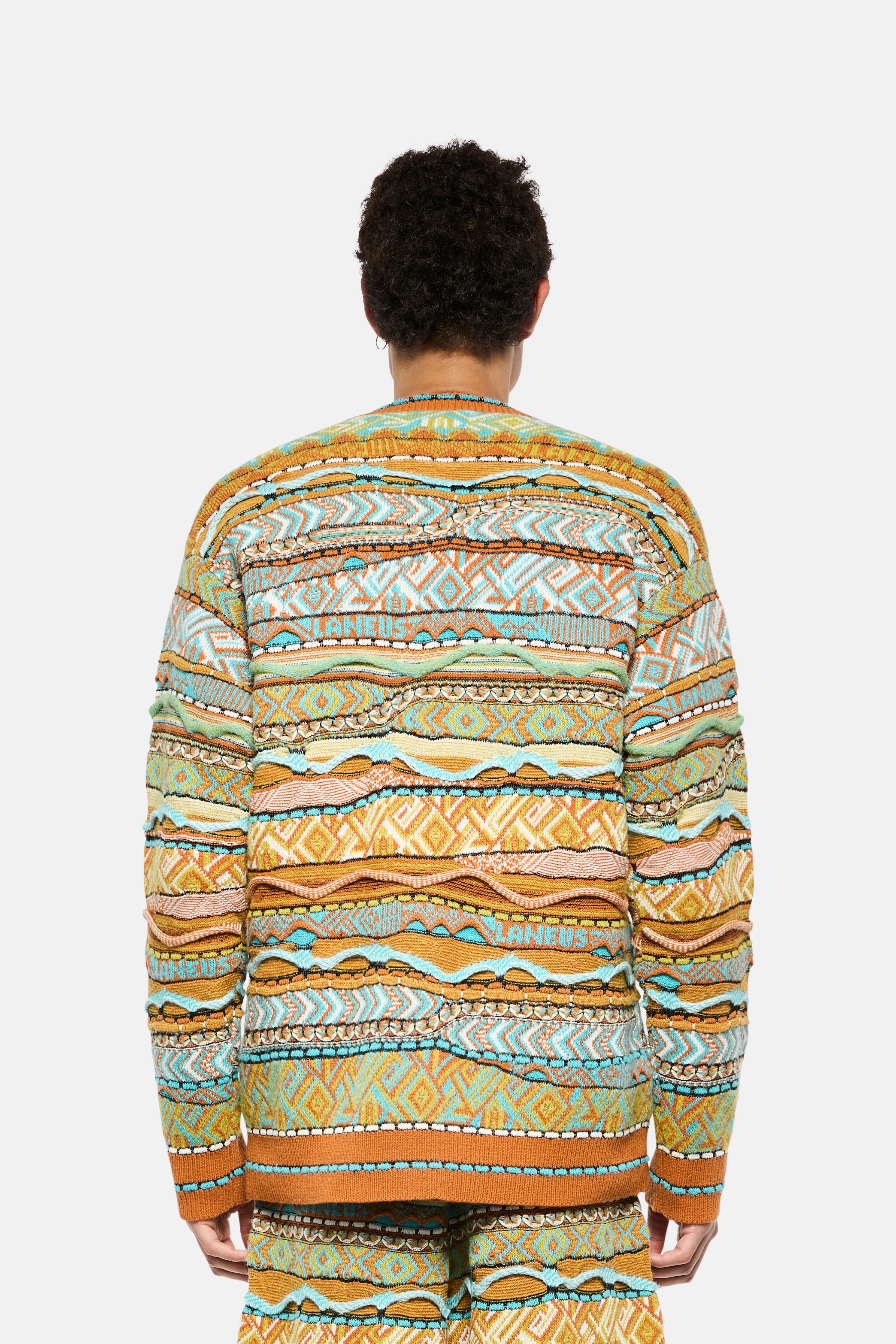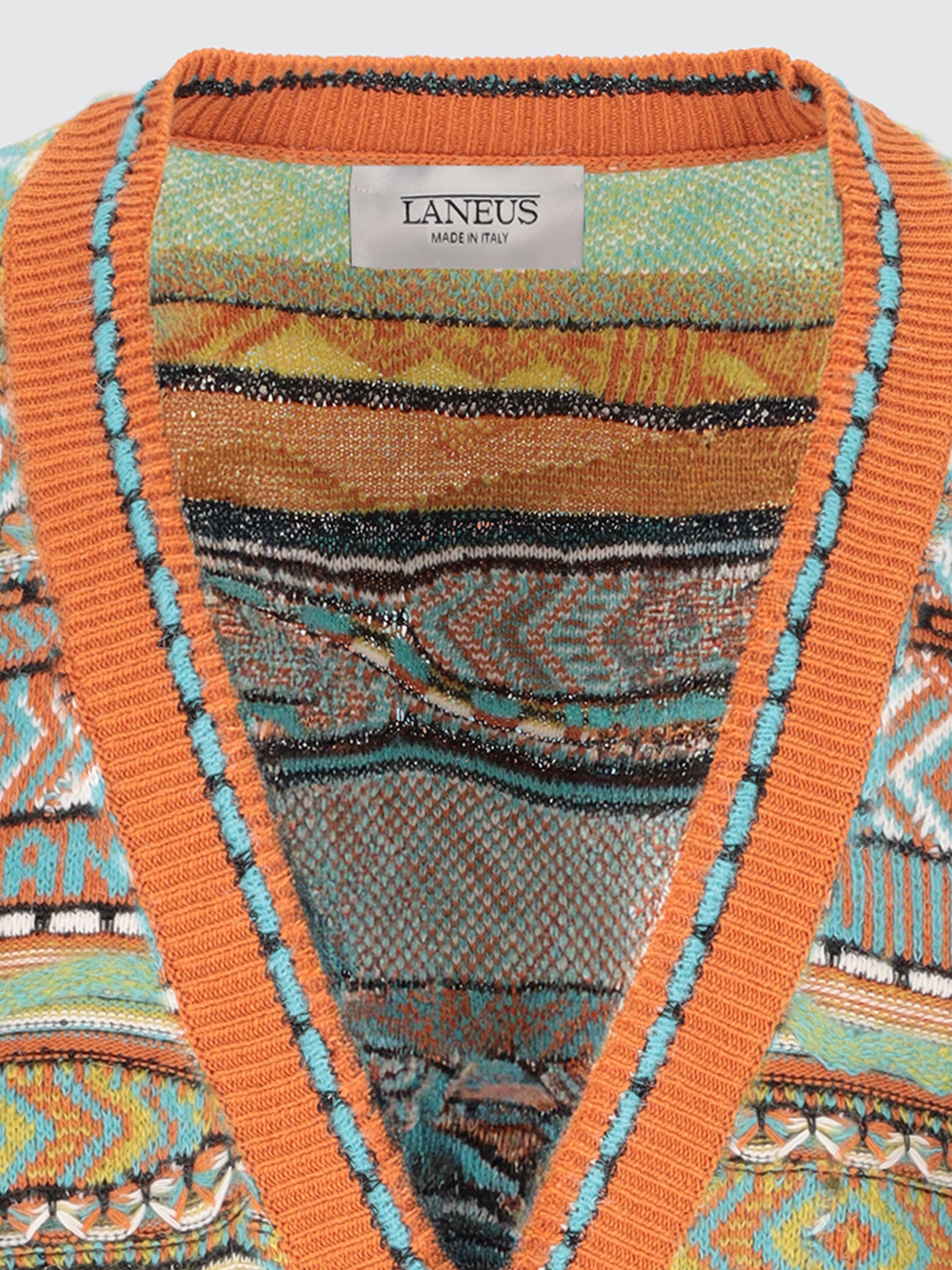 Questo cardigan in maglia rappresenta una nuova interpretazione dell’iconico jacquard Laneus, proposto in un disegno stagionale inedito che unisce design e sensibilità contemporanea. Il logo “Laneus” è elegantemente integrato nel motivo, a testimonianza della cura sartoriale del dettaglio. Caratterizzato da una vestibilità regular, presenta una chiusura frontale con bottoni che ne definisce la costruzione con sobria precisione. Il capo è realizzato con filati pregiati – tra cui alpaca e lana – che conferiscono struttura, matericità e una mano distintiva. Made in Italy.