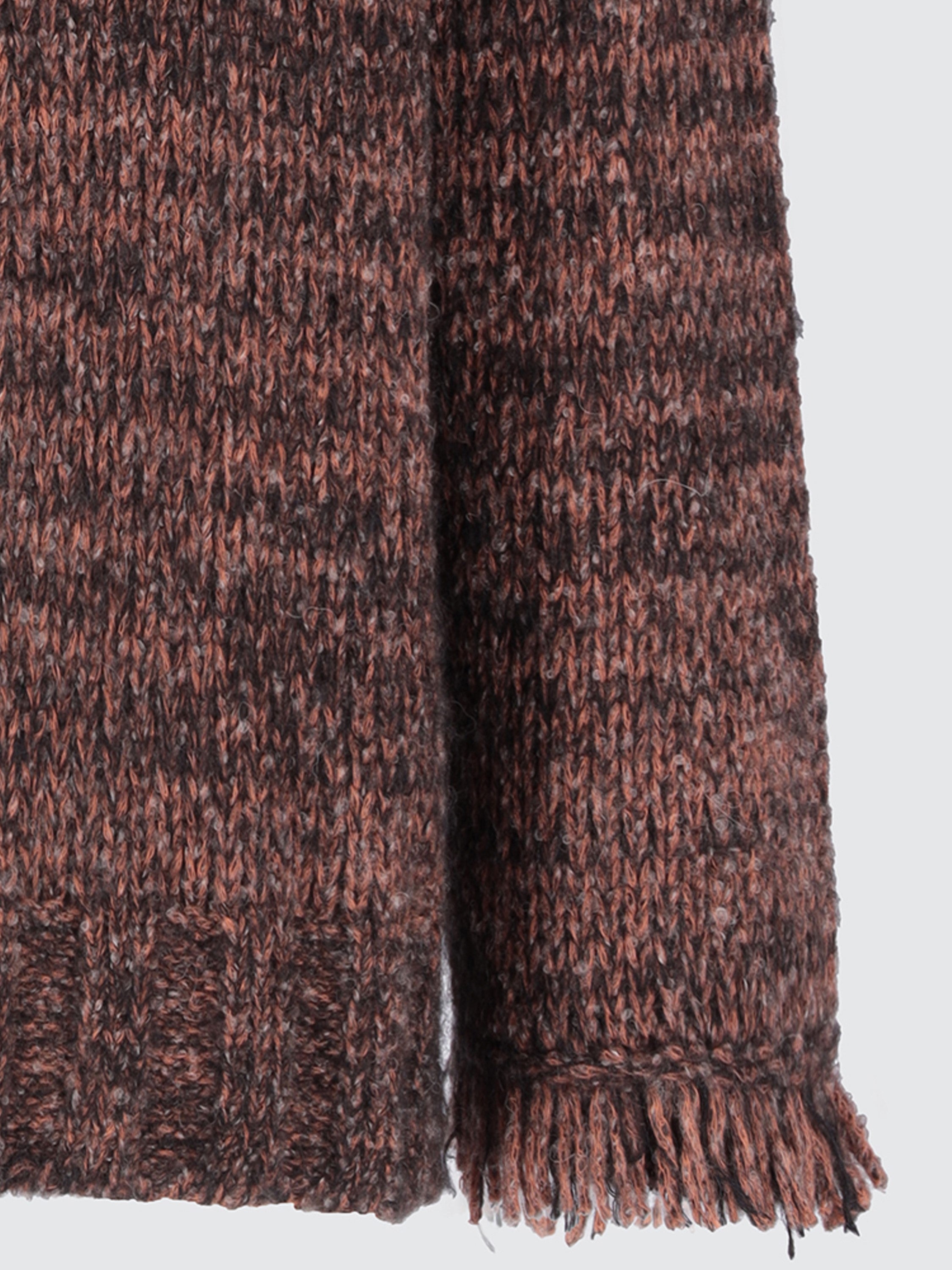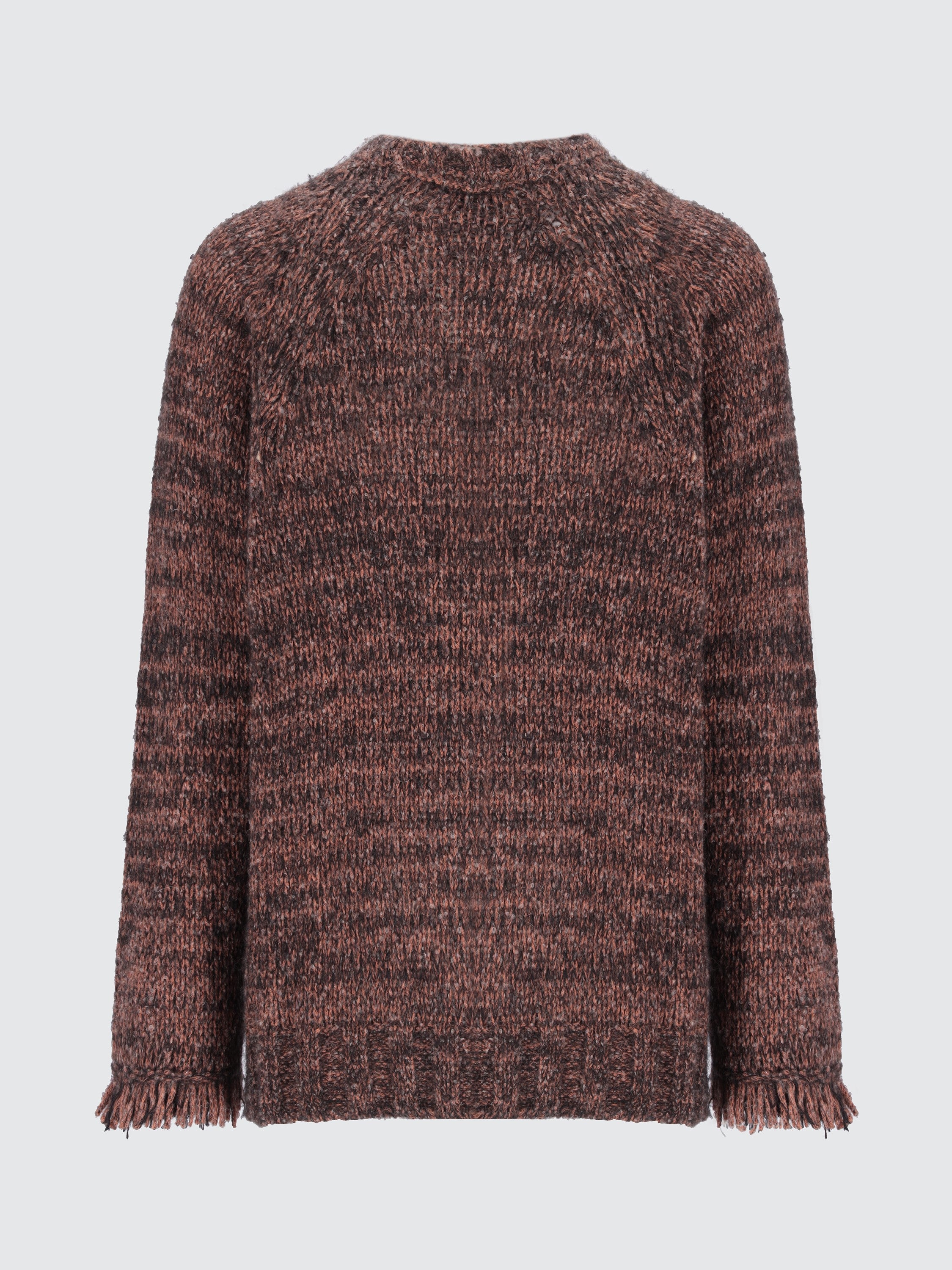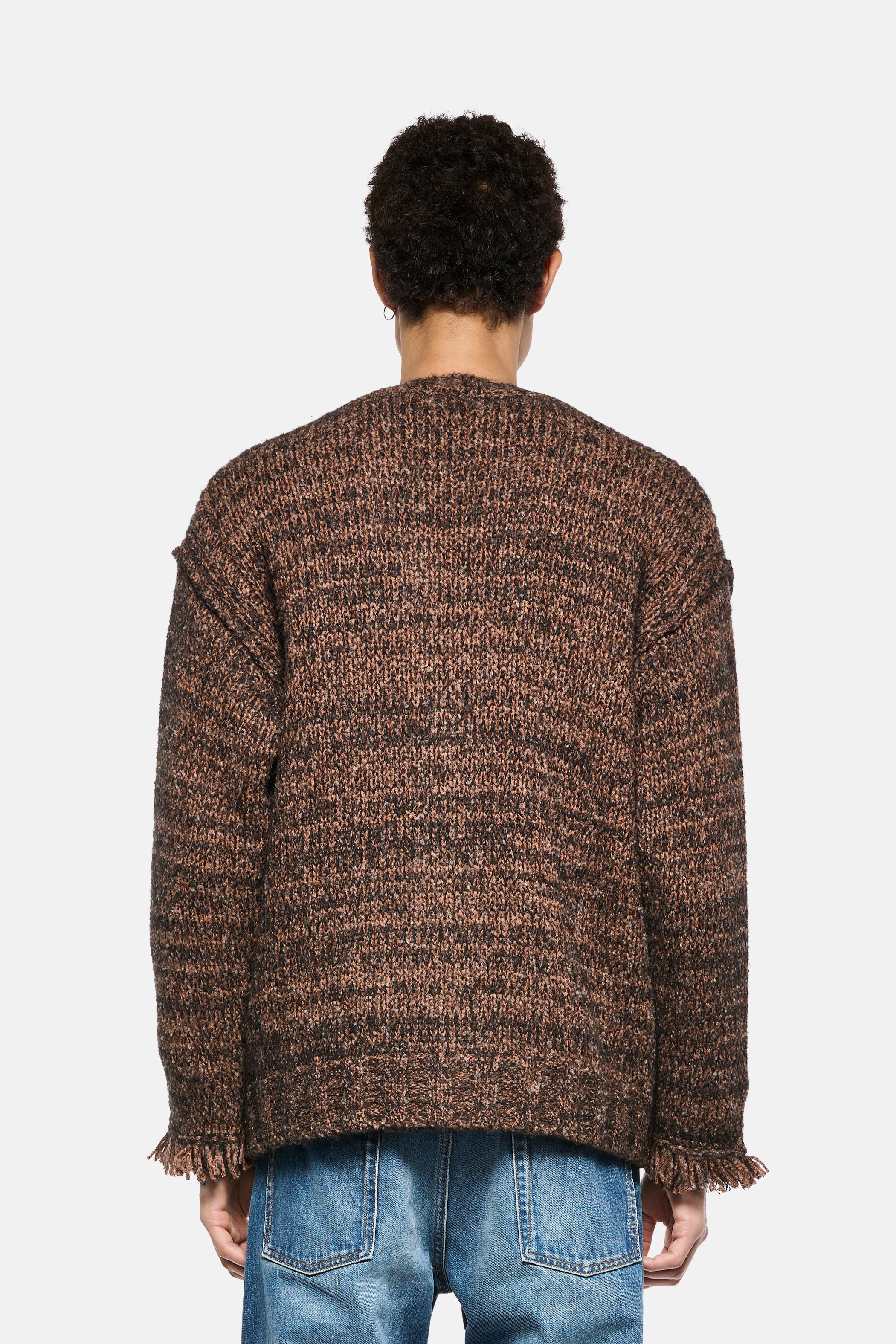 Espressione dell’estetica materica e sofisticata di Laneus, questo cardigan in maglia è realizzato in un mouliné mosso bicolore, che dona profondità visiva e una texture vibrante. I fondi manica sfrangiati e le cuciture esterne a vista interpretano con decisione il linguaggio contemporaneo del brand, dove la cura artigianale incontra una visione stilistica distintiva. La vestibilità regular e la chiusura frontale con bottoni completano il design con equilibrio e rigore. Il capo è realizzato in filati pregiati, tra cui baby alpaca e lana, che ne esaltano la struttura e la mano unica. Made in Italy.