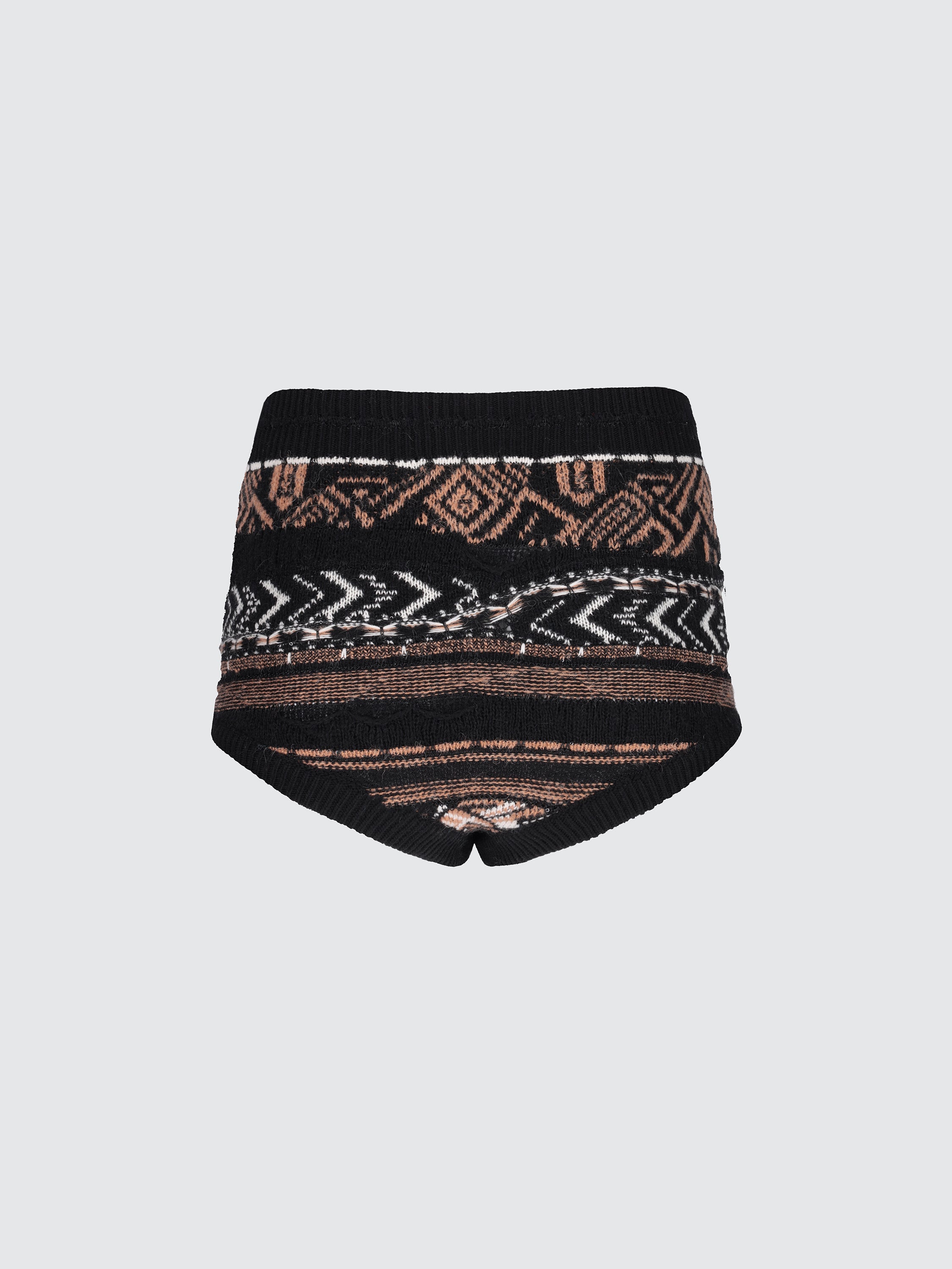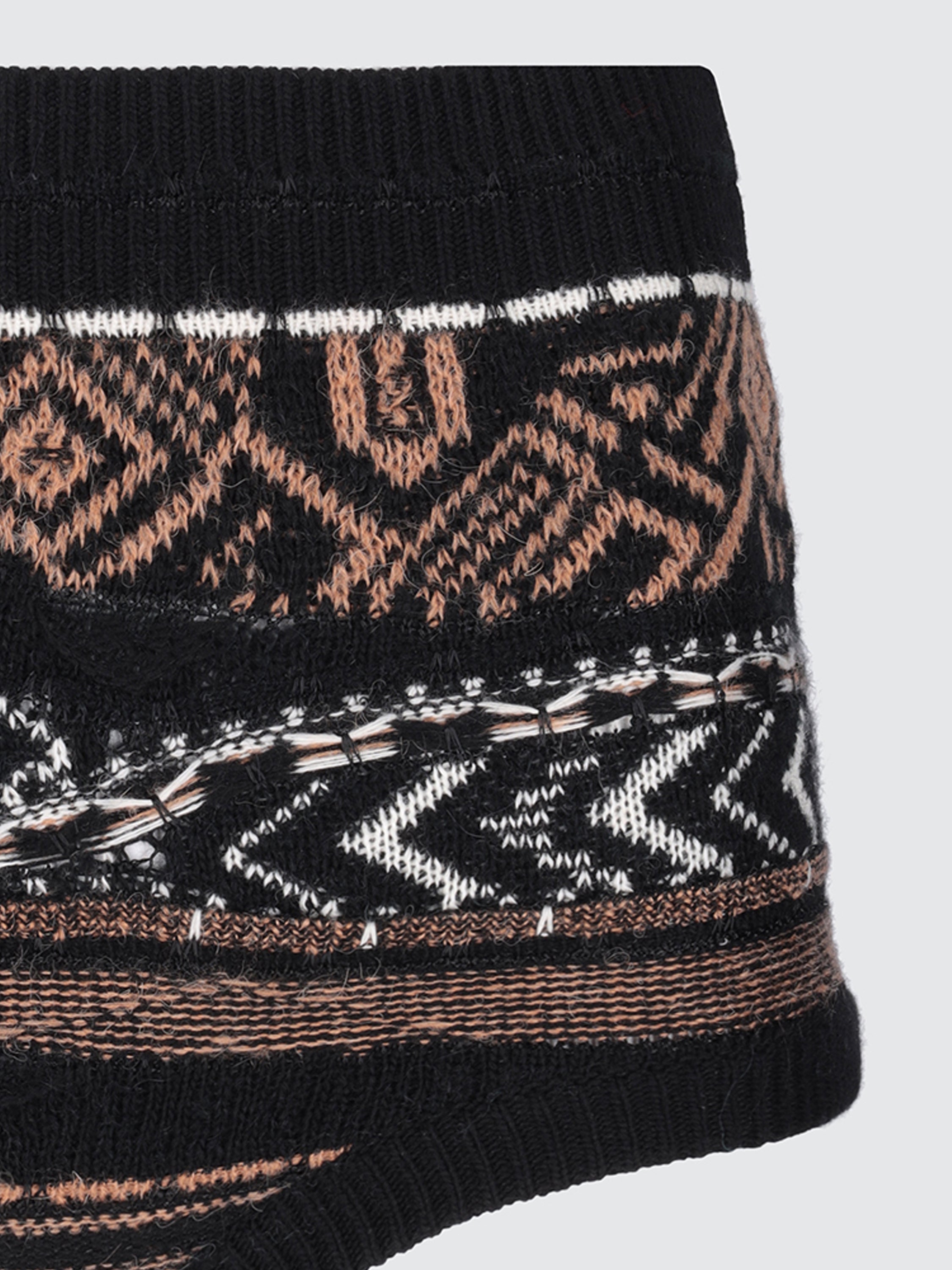 Grafica iconica e spirito contemporaneo. Questa coulotte in maglia jacquard presenta una vestibilità regular e il motivo “LA.” di Laneus reinterpretato con nuovi disegni e colori di collezione. La logatura del brand è integrata con eleganza nel pattern, per un equilibrio perfetto tra comfort e identità visiva. Realizzata in un mix di alpaca, lana e fibre elastiche per una vestibilità morbida e aderente. Made in Italy.