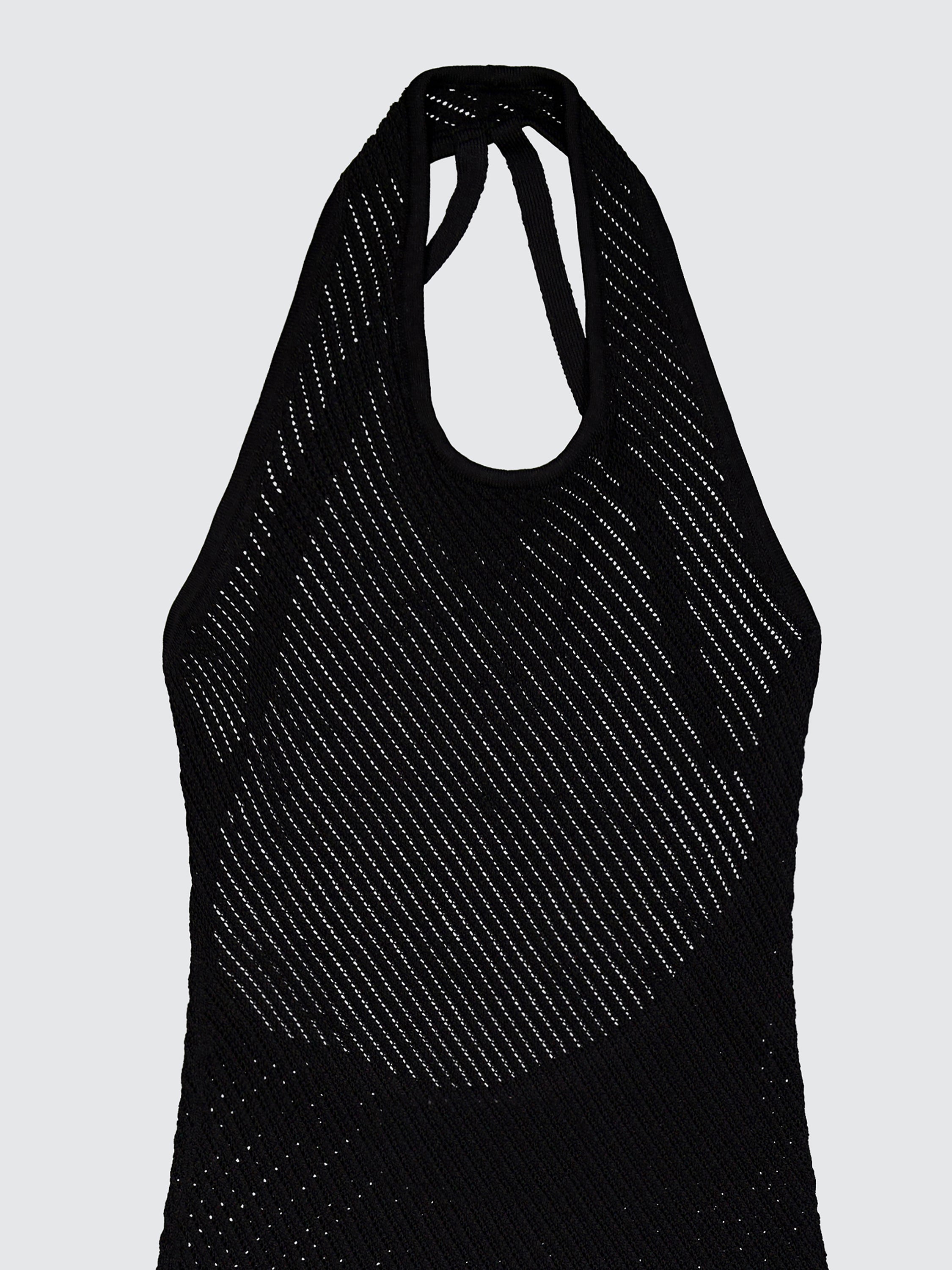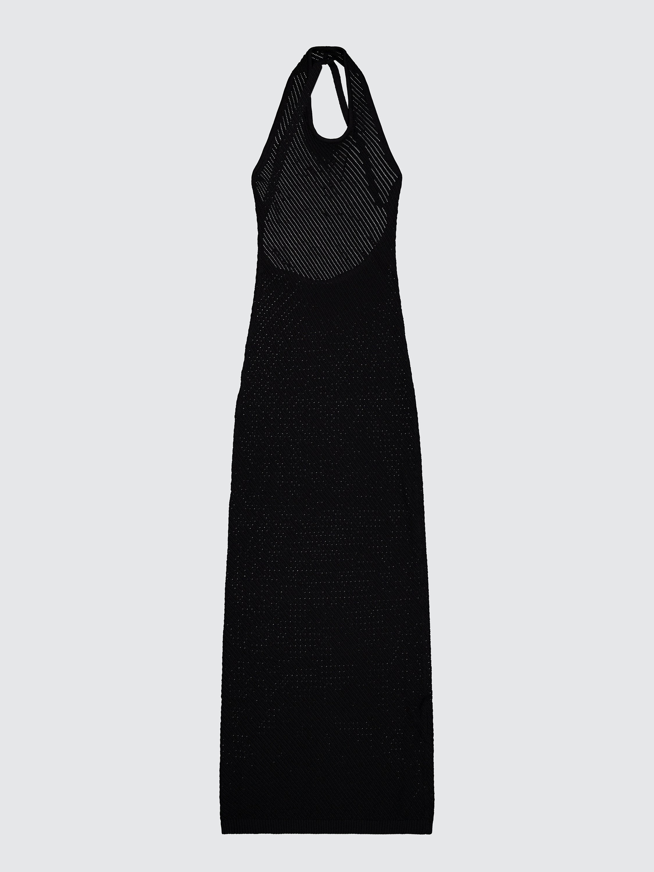 Da sfoggiare ora e per molte stagioni a venire: è il nuovo abito midi firmato Laneus. Il modello aderente è realizzato in maglia caratterizzata da una lavorazione traforata con scollo oblò e spalline lungo la schiena nuda. La modella in foto è alta 180 cm ed indossa una 40/S.
