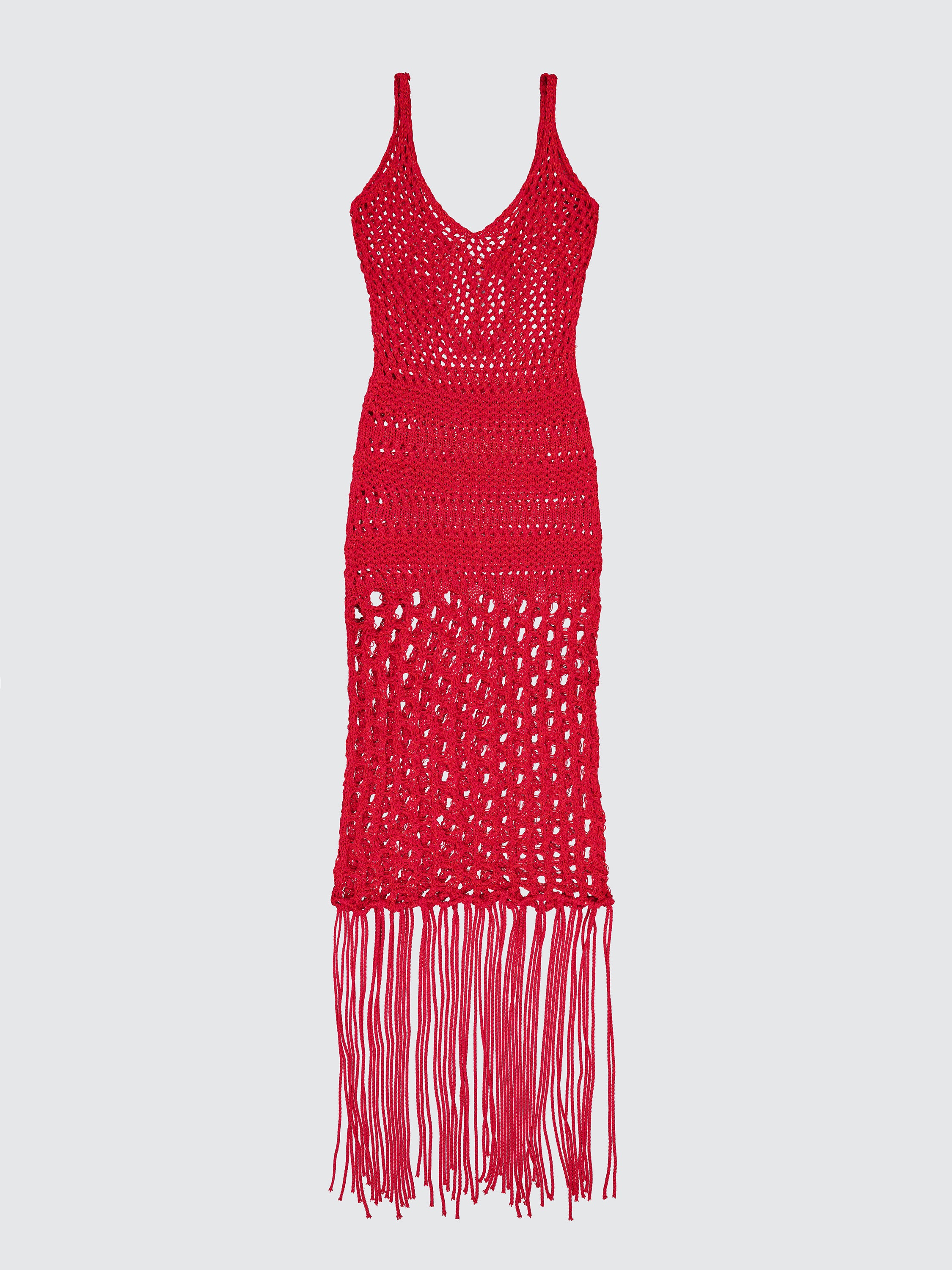 Abito lungo in crochet con frange