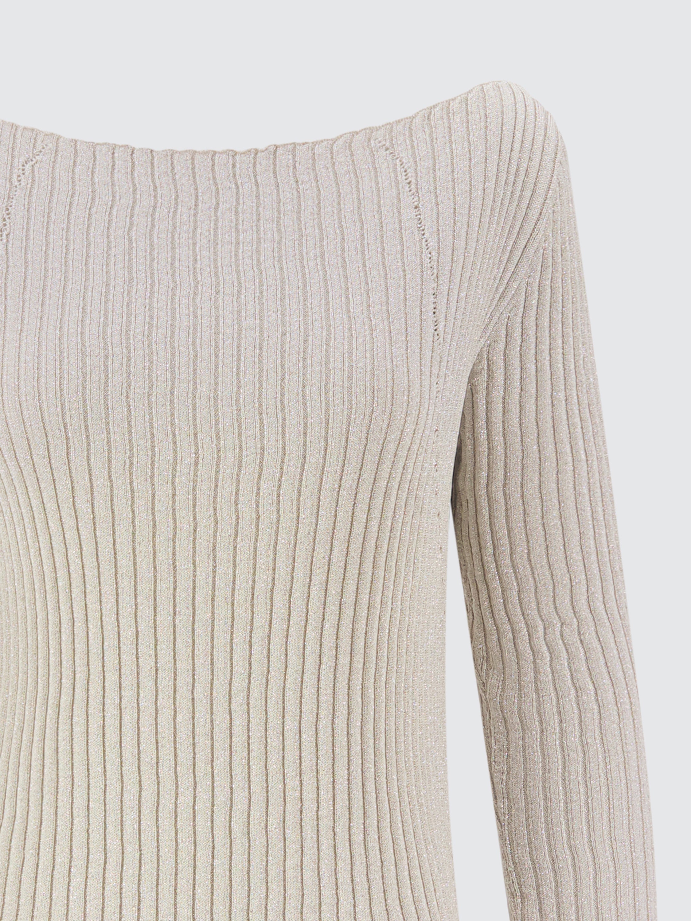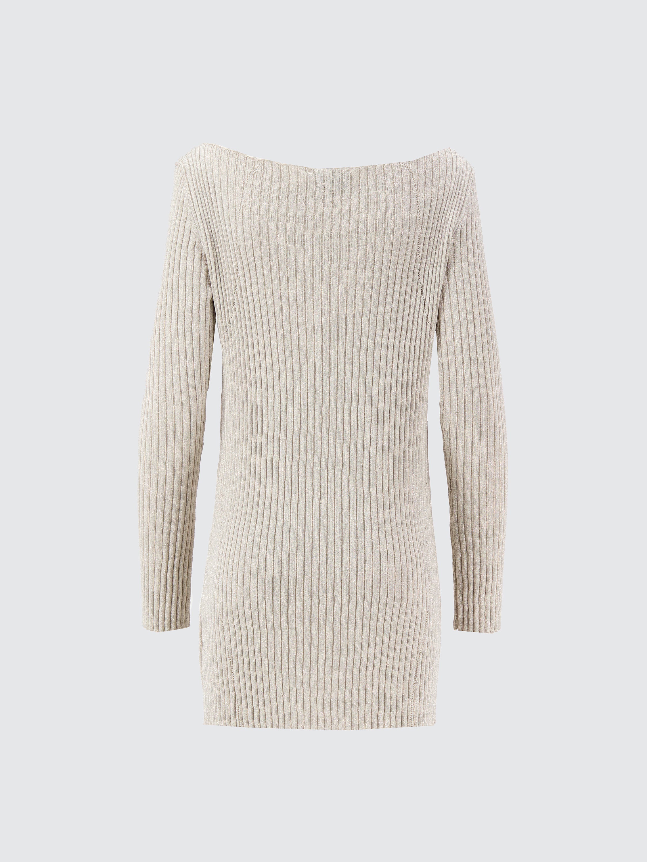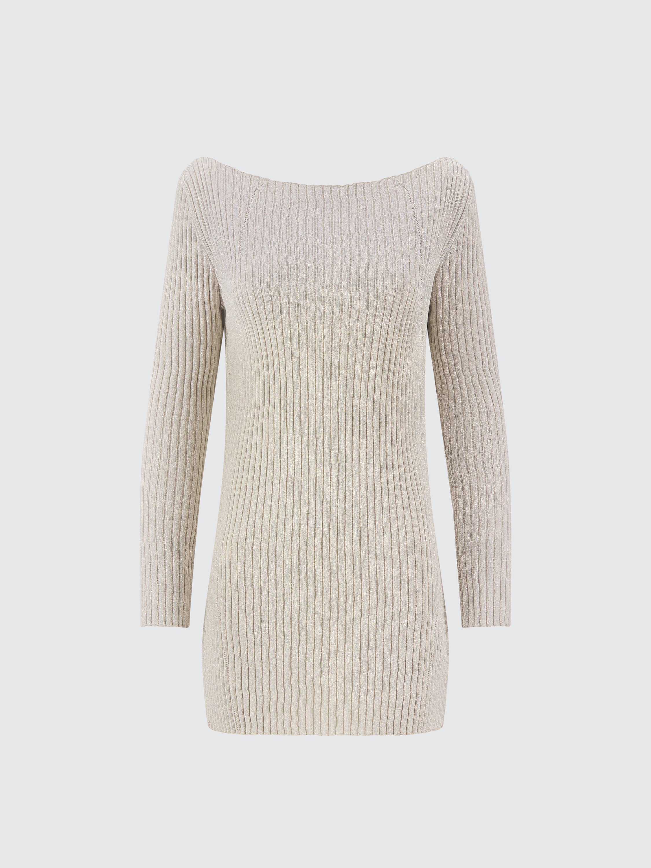 Questo miniabito di Laneus con manica lunga, realizzato in maglia leggera a costa larga con linea corta e attillata, presenta uno scollo a barca intriso di luminosi filati in Lurex, brillerà di luce propria nei vostri abbinamenti estivi. La modella è alta 180 cm ed indossa una 40/S.