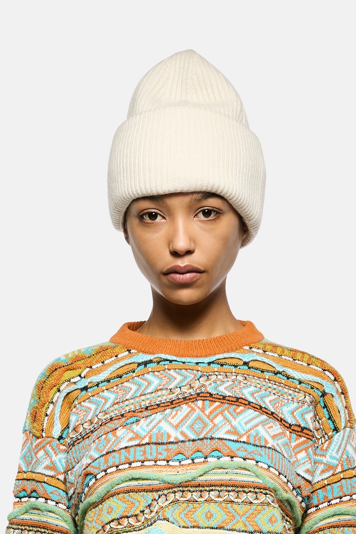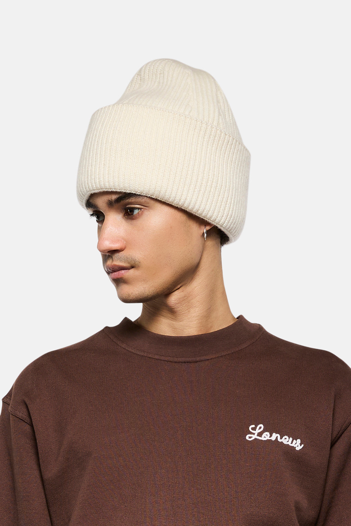 Questo cappello in maglia firmato Laneus è realizzato in 100% cashmere, un materiale pregiato che offre una sensazione di calore e morbidezza. La lavorazione a coste dona struttura al modello, mentre il design minimalista lo rende facile da abbinare a diversi look. Un accessorio essenziale per la stagione fredda, pensato per un’eleganza discreta e contemporanea. Made in Italy.