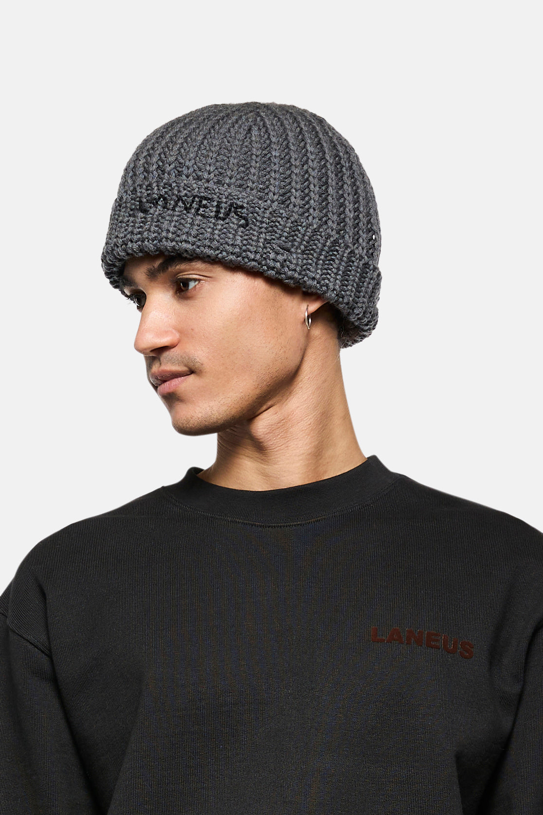 Mood rilassato e attitudine decisa. Il cappello in maglia Laneus è rifinito con ricamo a mano e texture a coste larghe. Un dettaglio essenziale per completare il look con un twist urbano e contemporaneo. Realizzato in 100% lana Super 100’s. Made in Italy.