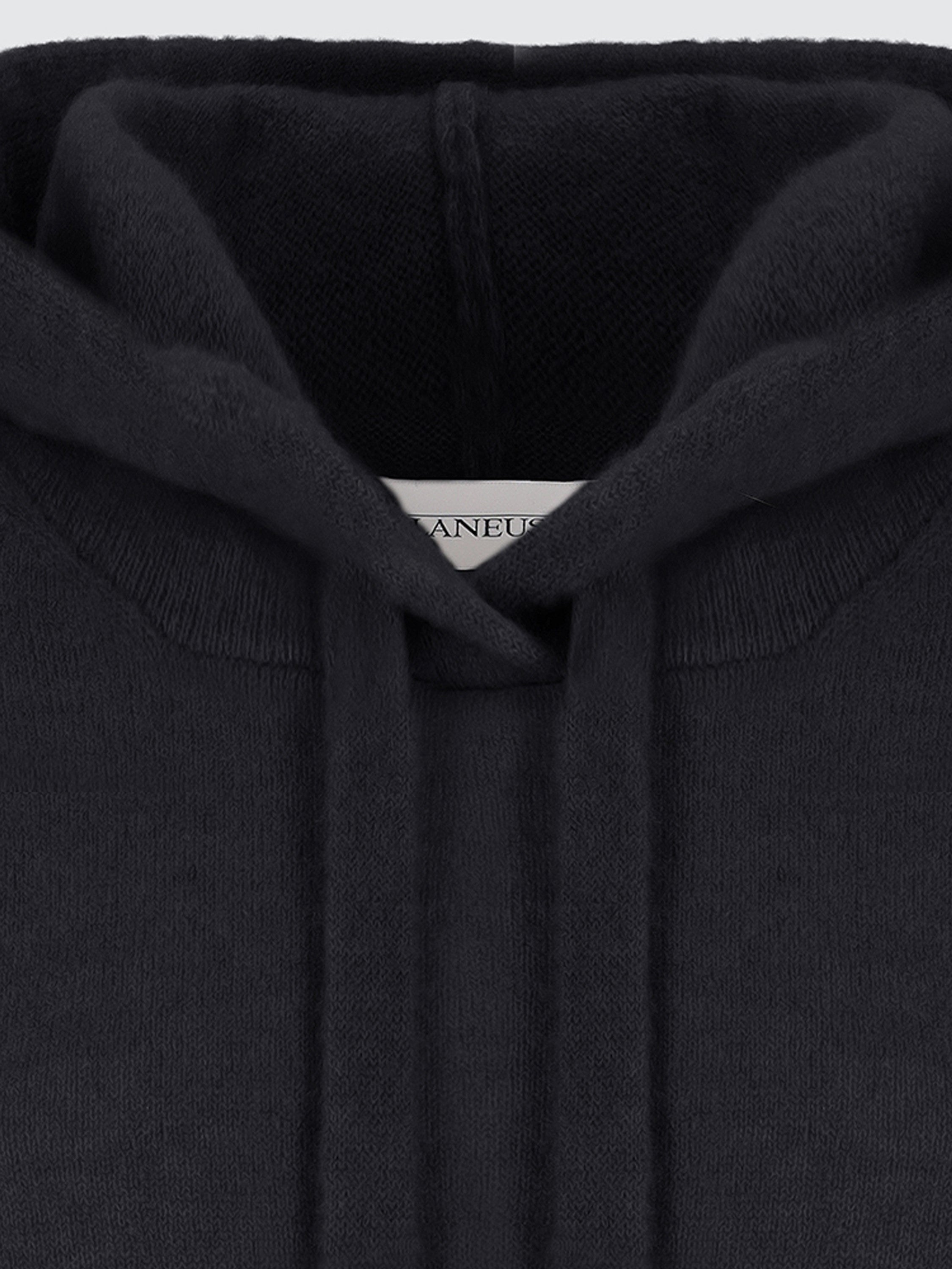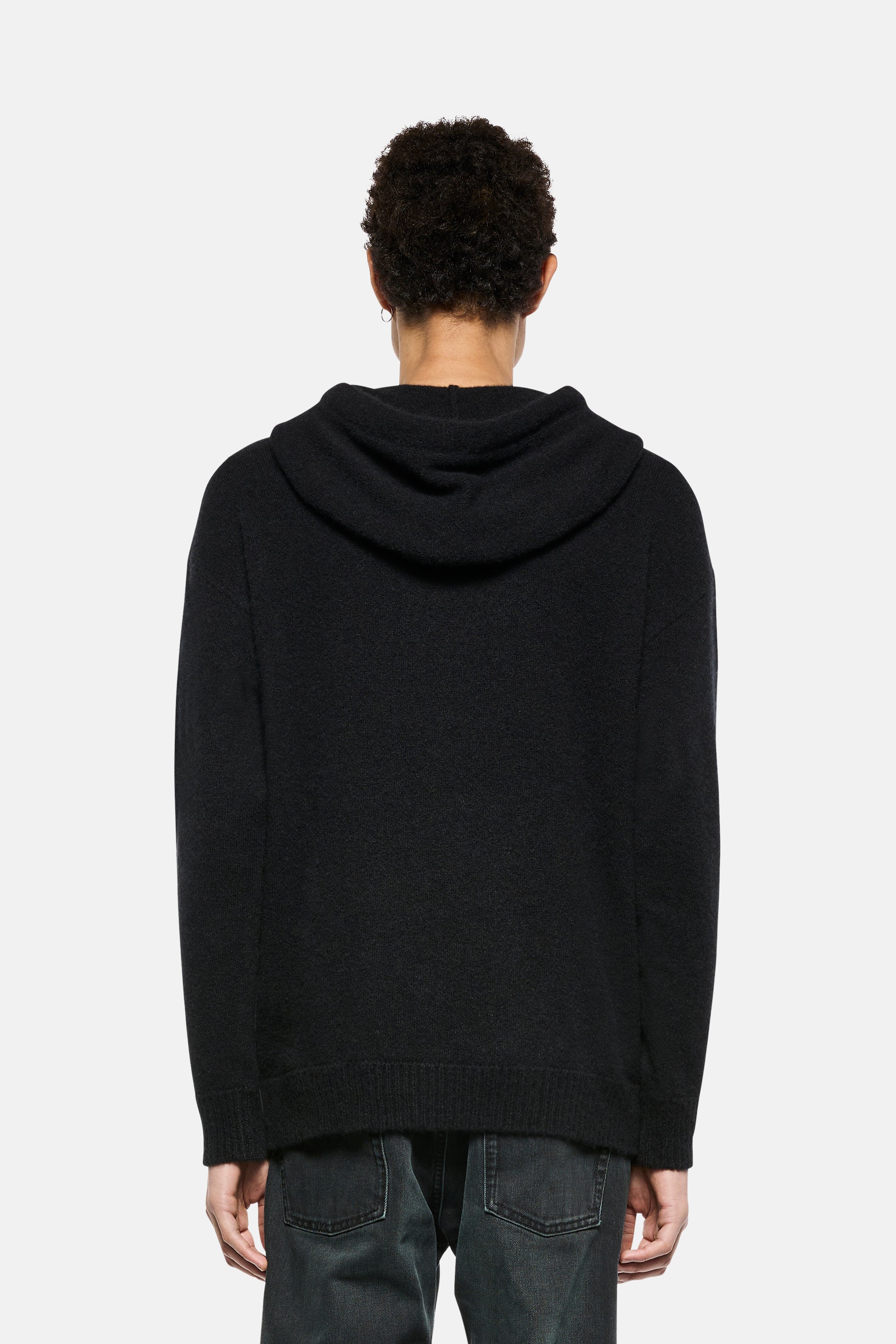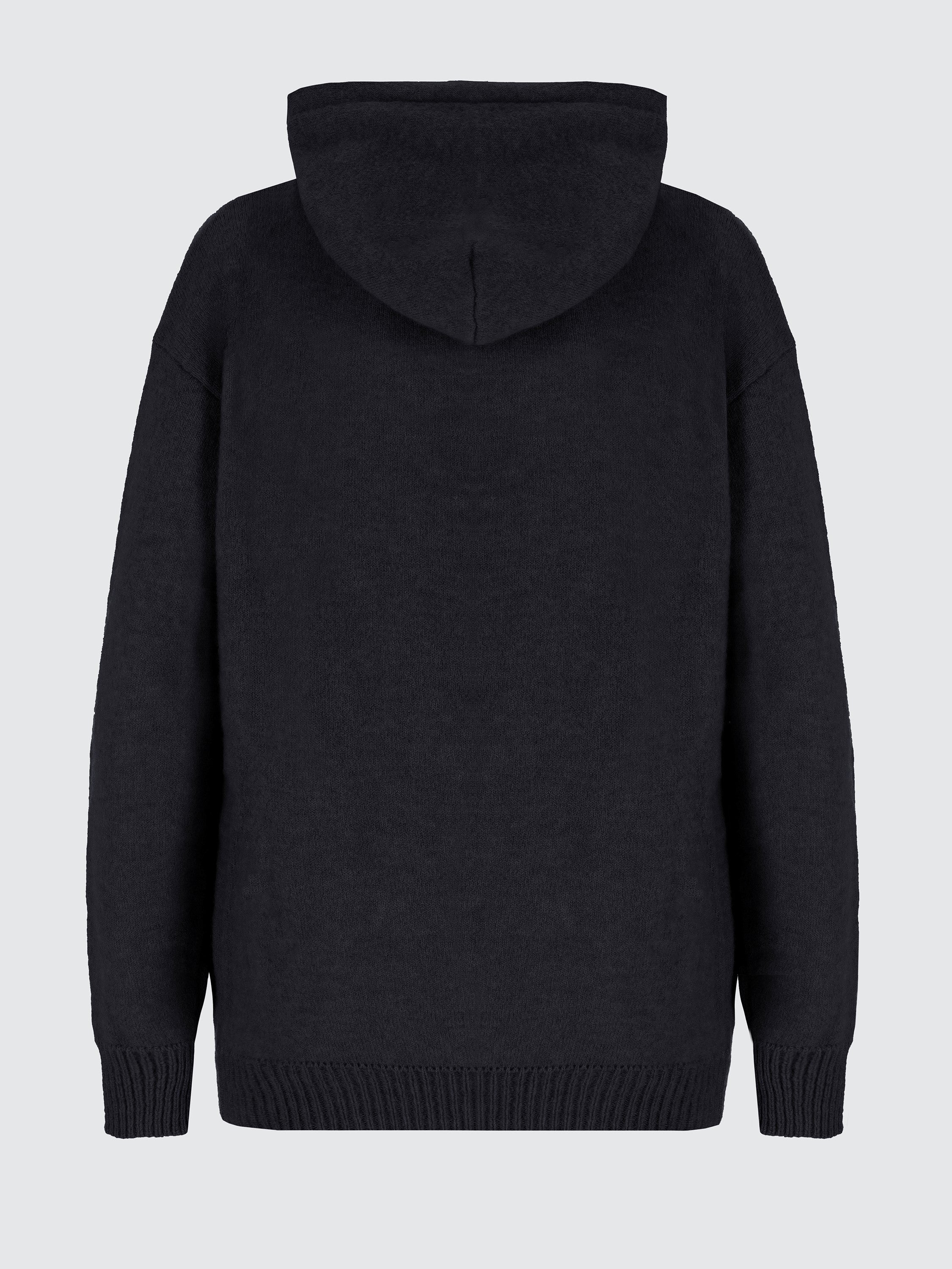Hoodie in maglia dallo stile essenziale e sofisticato, realizzata i cashmere lavorato a punto rasato per una finitura liscia e confortevole. Dotata di cappuccio con coulisse regolabile e ampia tasca a marsupio sul davanti. La vestibilità è regular, perfetta per un look rilassato ma curato. Made in Italy.