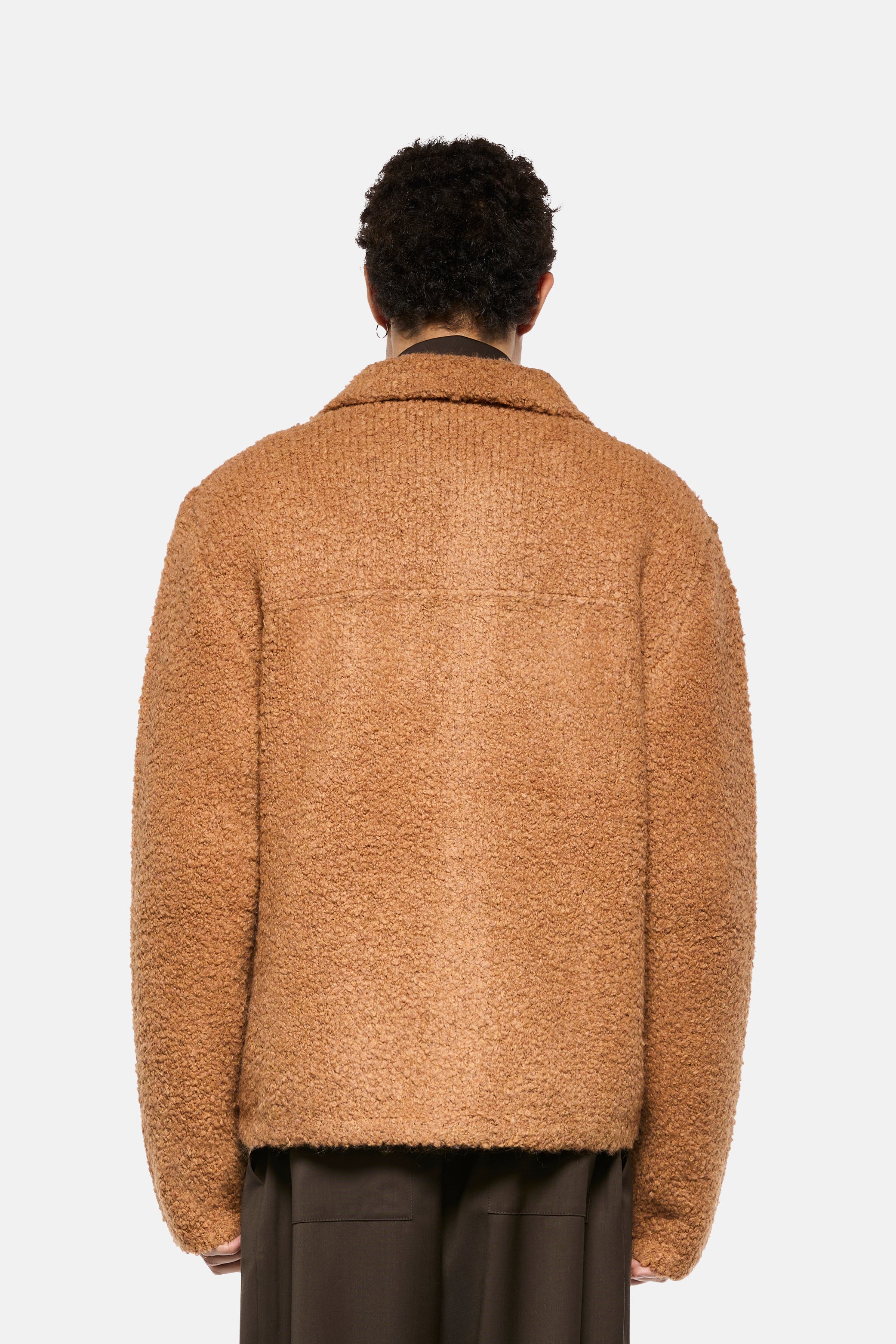 Questa giacca firmata Laneus è una reinterpretazione in maglia della classica trucker jacket, caratterizzata da una texture effetto bouclé che le conferisce un look caldo e materico. Presenta una vestibilità regular, chiusura frontale con bottoni a chiodo, due tasche laterali a letto e due tasche frontali con pattina e bottone, per un perfetto equilibrio tra funzionalità e stile. Realizzata con una composizione mista di lana e alpaca, unisce comfort e un’estetica contemporanea, rimanendo fedele allo spirito distintivo di Laneus. Made in Italy.