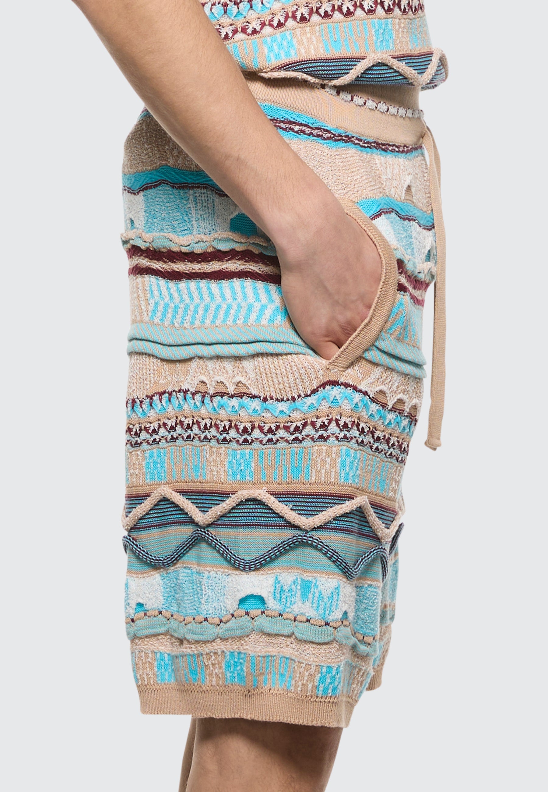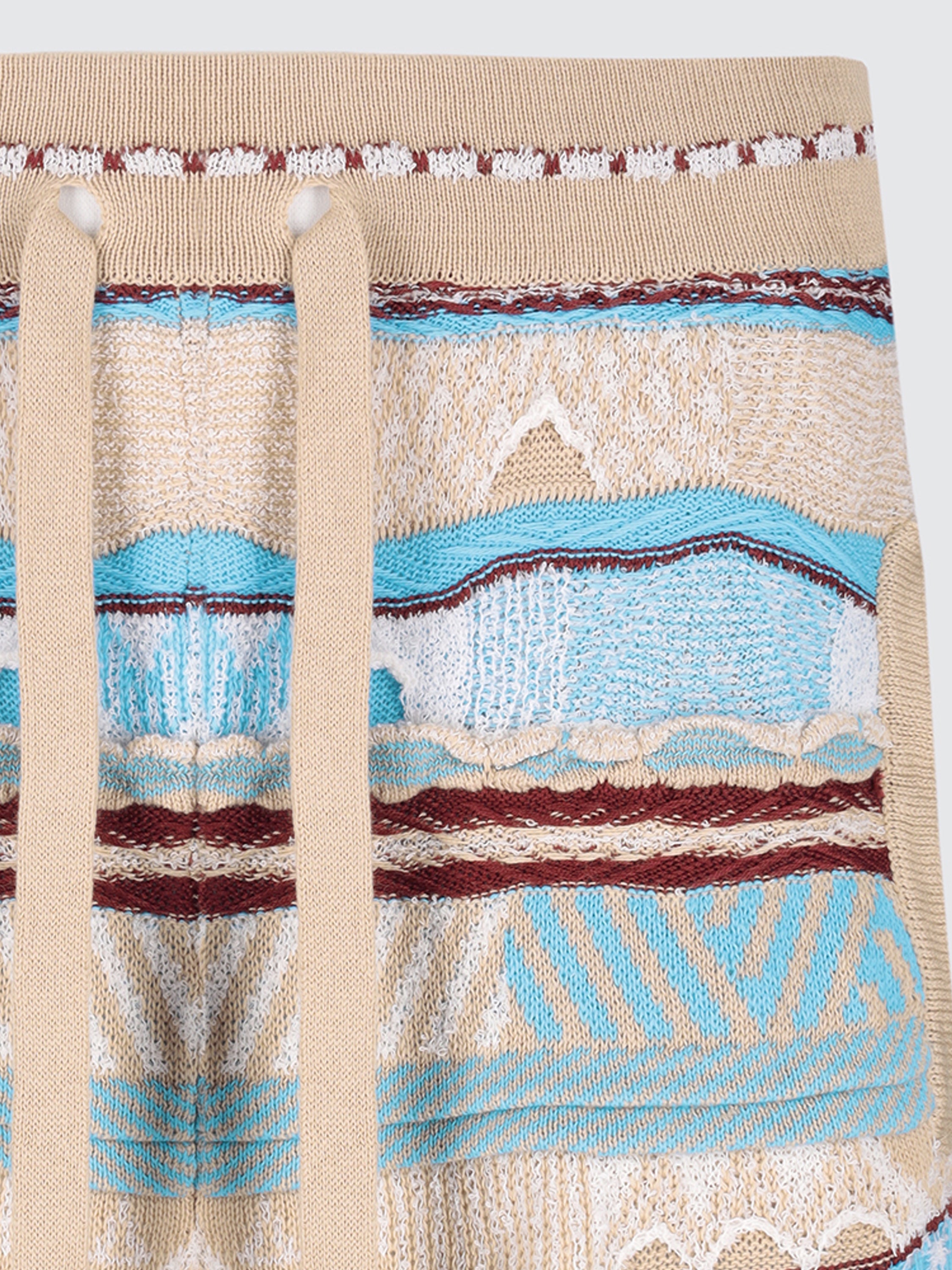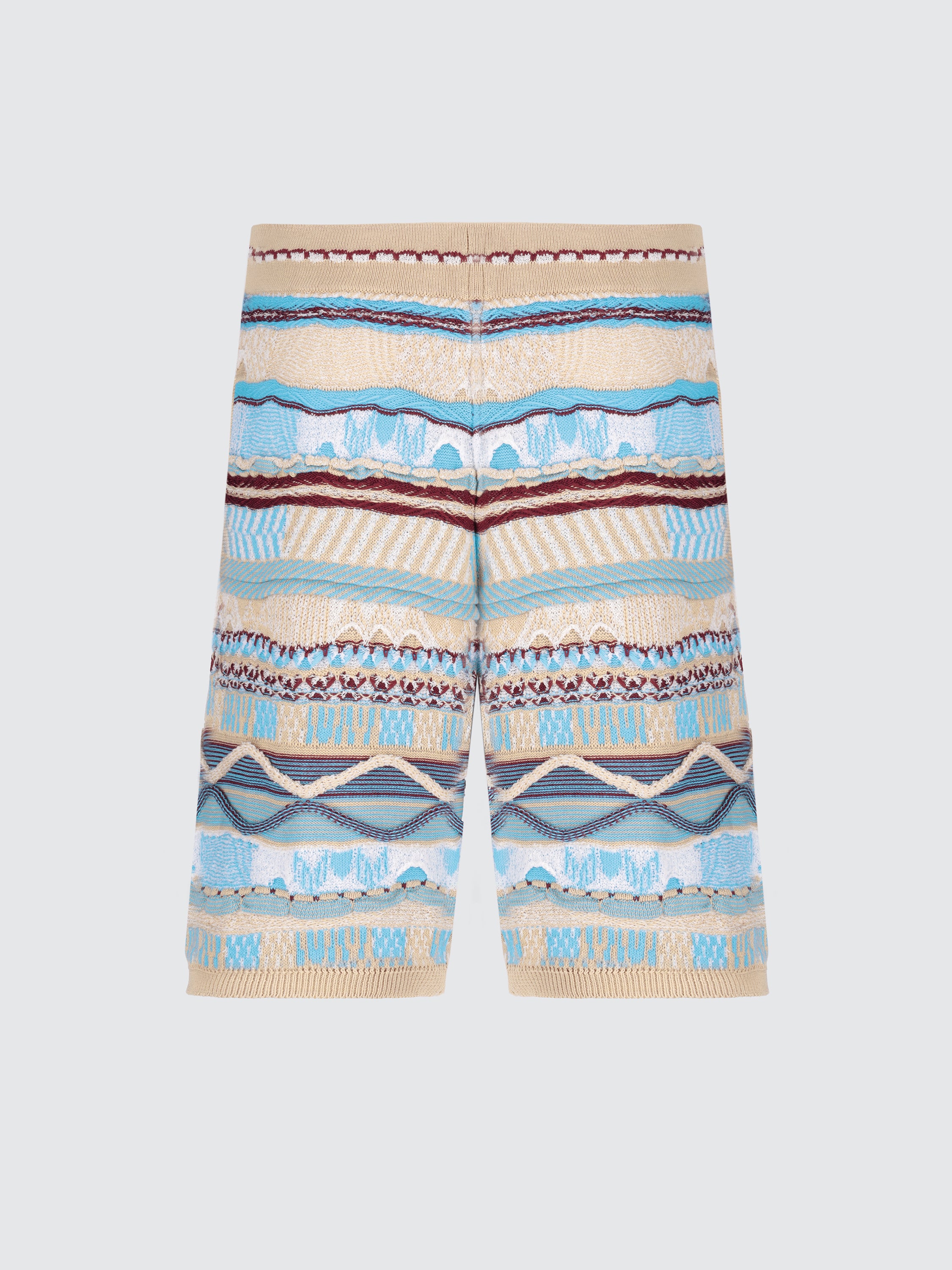 Lasciatevi conquistare da un’originale interpretazione del guardaroba estivo con questi bermuda di Laneus. Dal fit regular ,il modello presenta una tasca monofiletto in cucitura e vita alta con coulisse regolabile. Realizzato in Italia in filato di cotone con iconico motivo jacquard multifilo. Made in Italy. Il modello è alto 190 cm ed indossa una 48/M