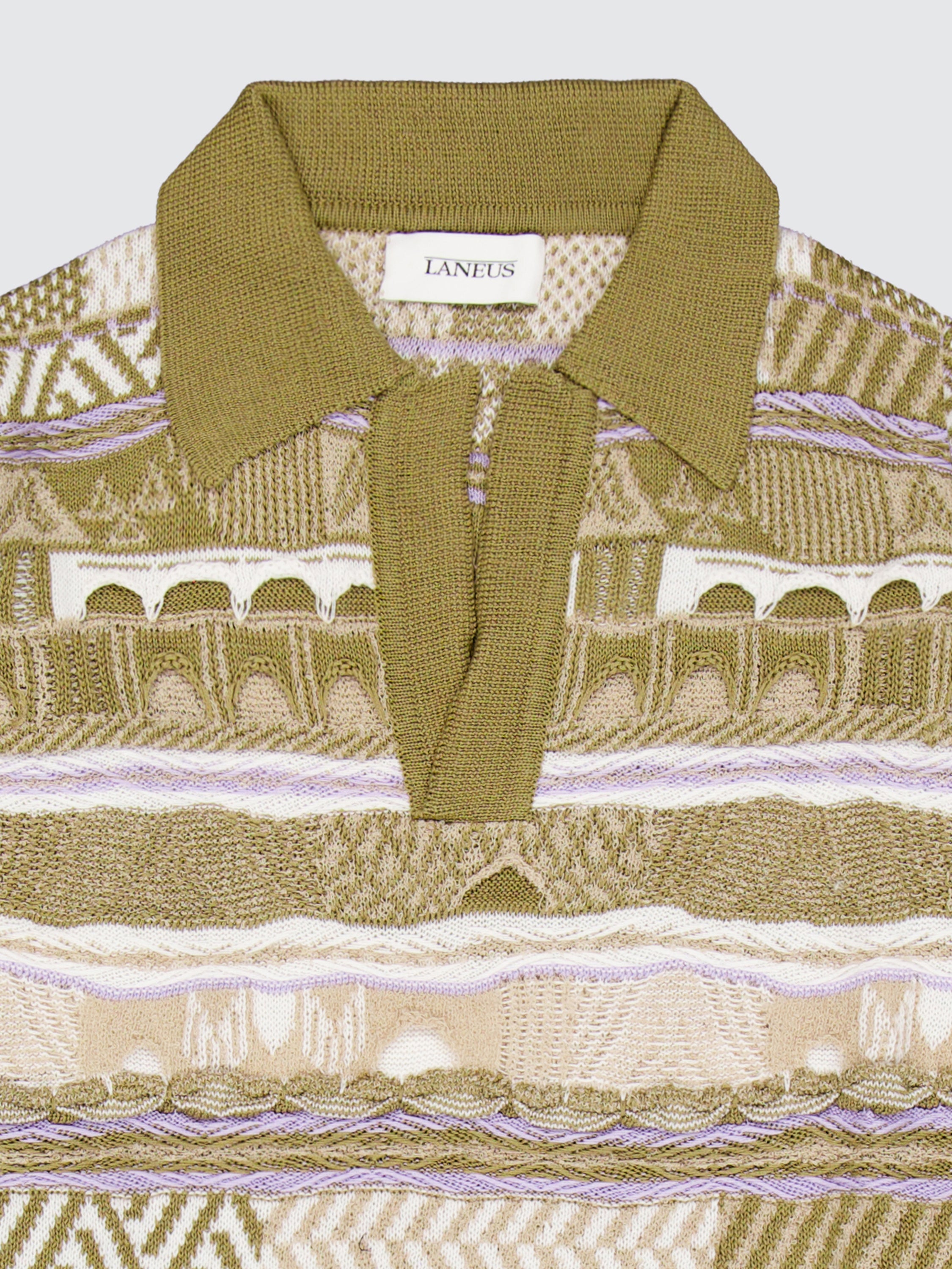 La polo di Laneus è realizzata in iconico filato di cotone jacquard multifilo e presenta una silhouette regular con maniche corte, un fessino profondo senza bottoni e il colletto all'italiana che ne definisce lo stile rilassato. Made in Italy. Il modello è alto 190 cm ed indossa una 48/M .