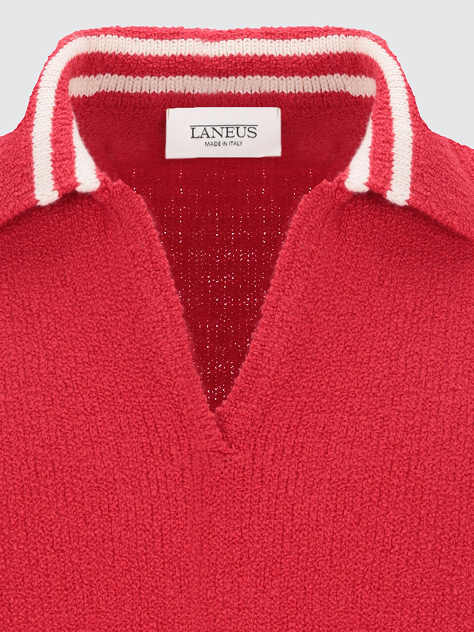 La polo di Laneus è realizzata in pregiato filato di cotone con motivo a righe e presenta una silhouette regular con maniche corte, fessino profondo senza bottoni e il colletto all'italiana che ne definisce lo stile rilassato. Made in Italy. Il modello è alto 190 cm ed indossa una 48/M