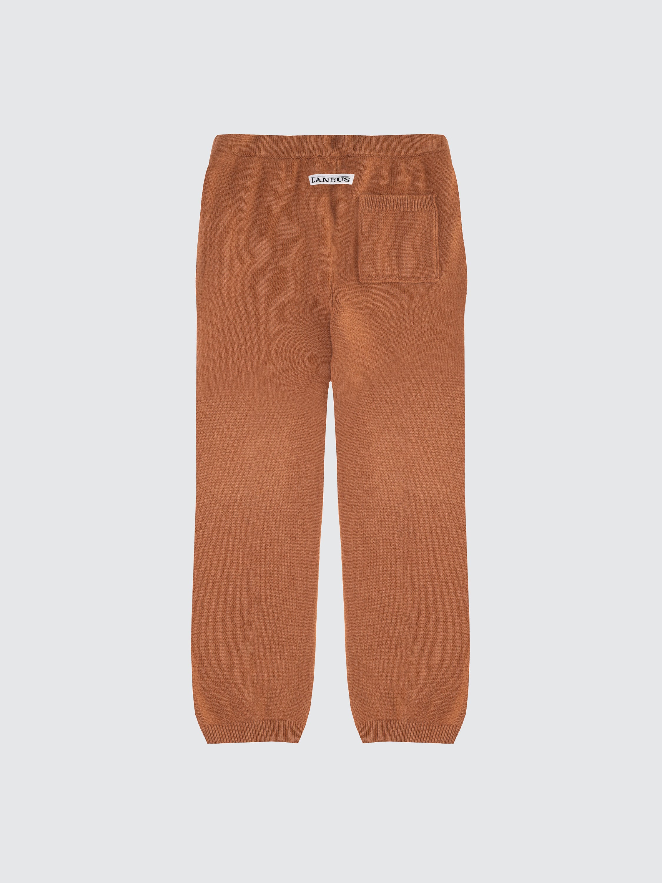 Pantalone in maglia firmato Laneus, realizzato in un pregiato blend di lana merinos extrafine, seta e cashmere. Caratterizzato da una vestibilità ampia e morbida, presenta vita elasticizzata e tasche applicate, per un perfetto equilibrio tra eleganza e comfort quotidiano.