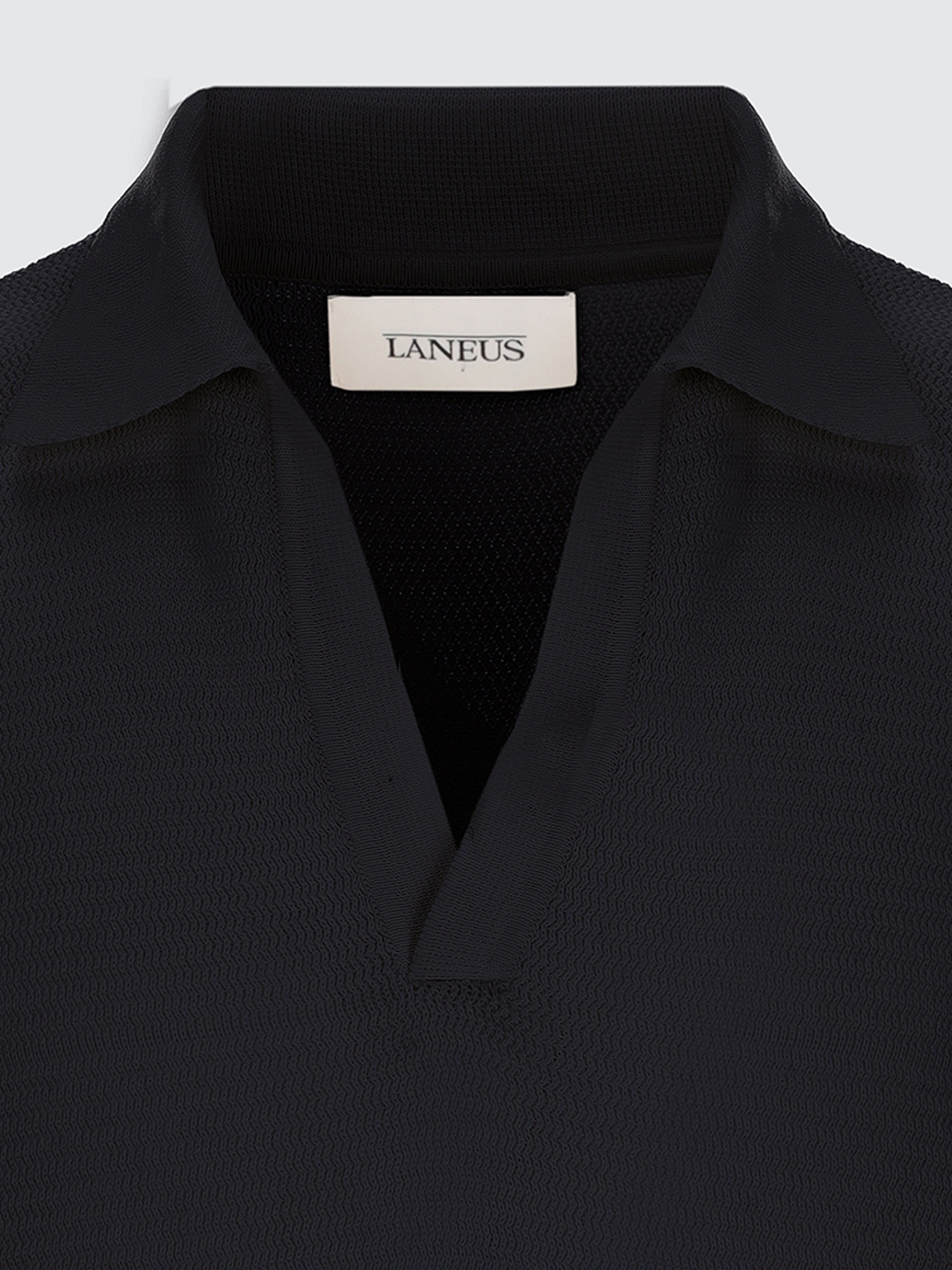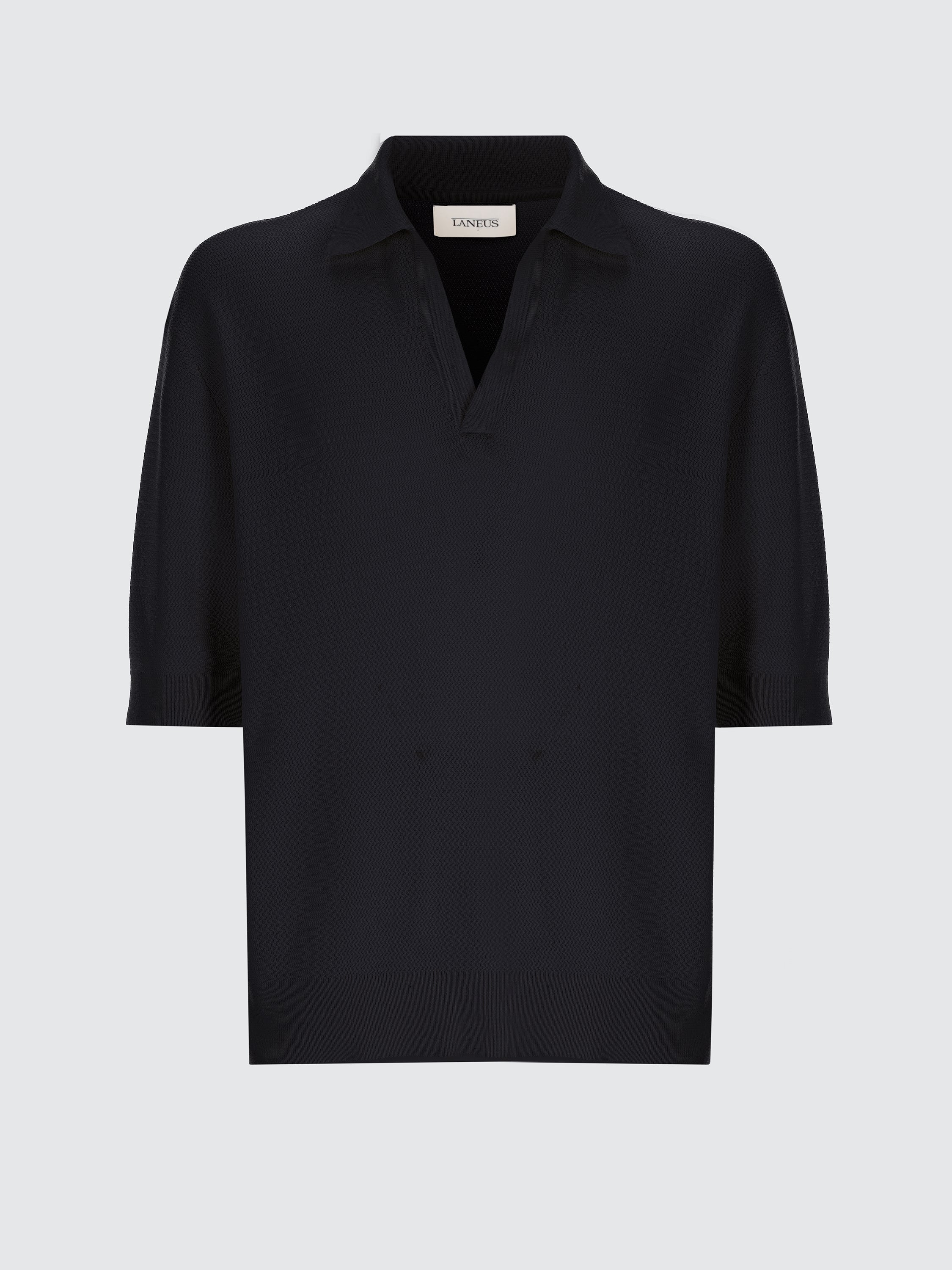 La polo di Laneus è realizzata in pregiato filato di cotone e presenta una silhouette regular con maniche corte, fessino profondo senza bottoni e il colletto all'italiana che ne definisce lo stile rilassato. Made in Italy.