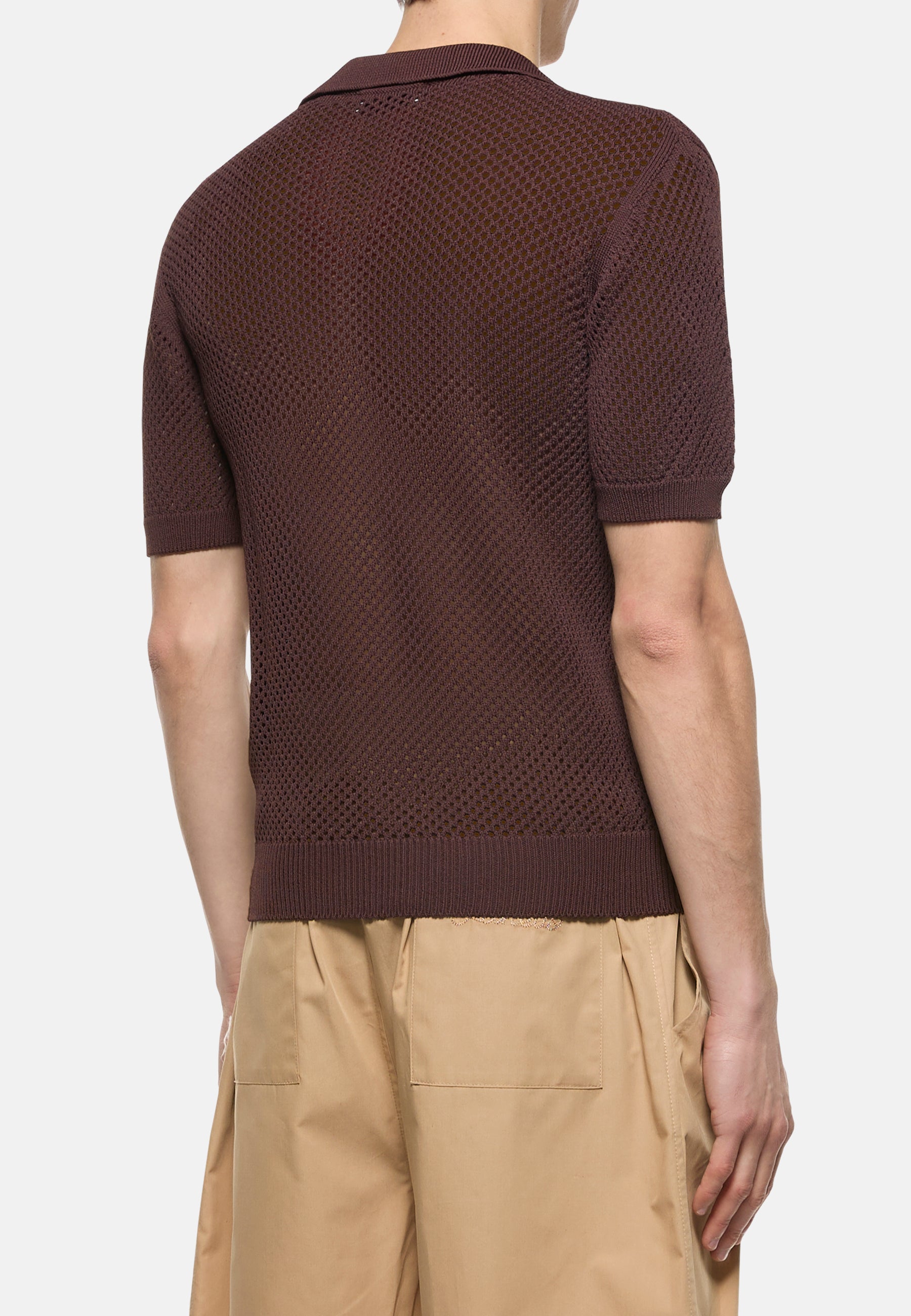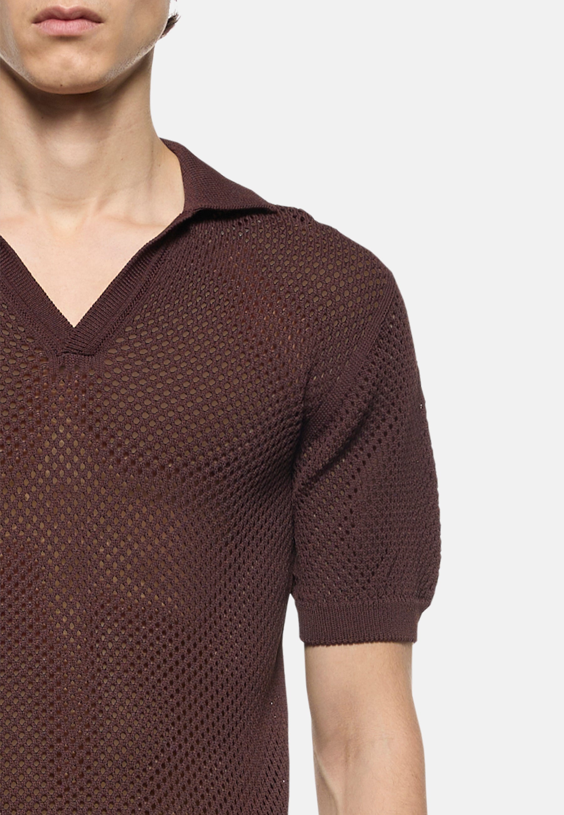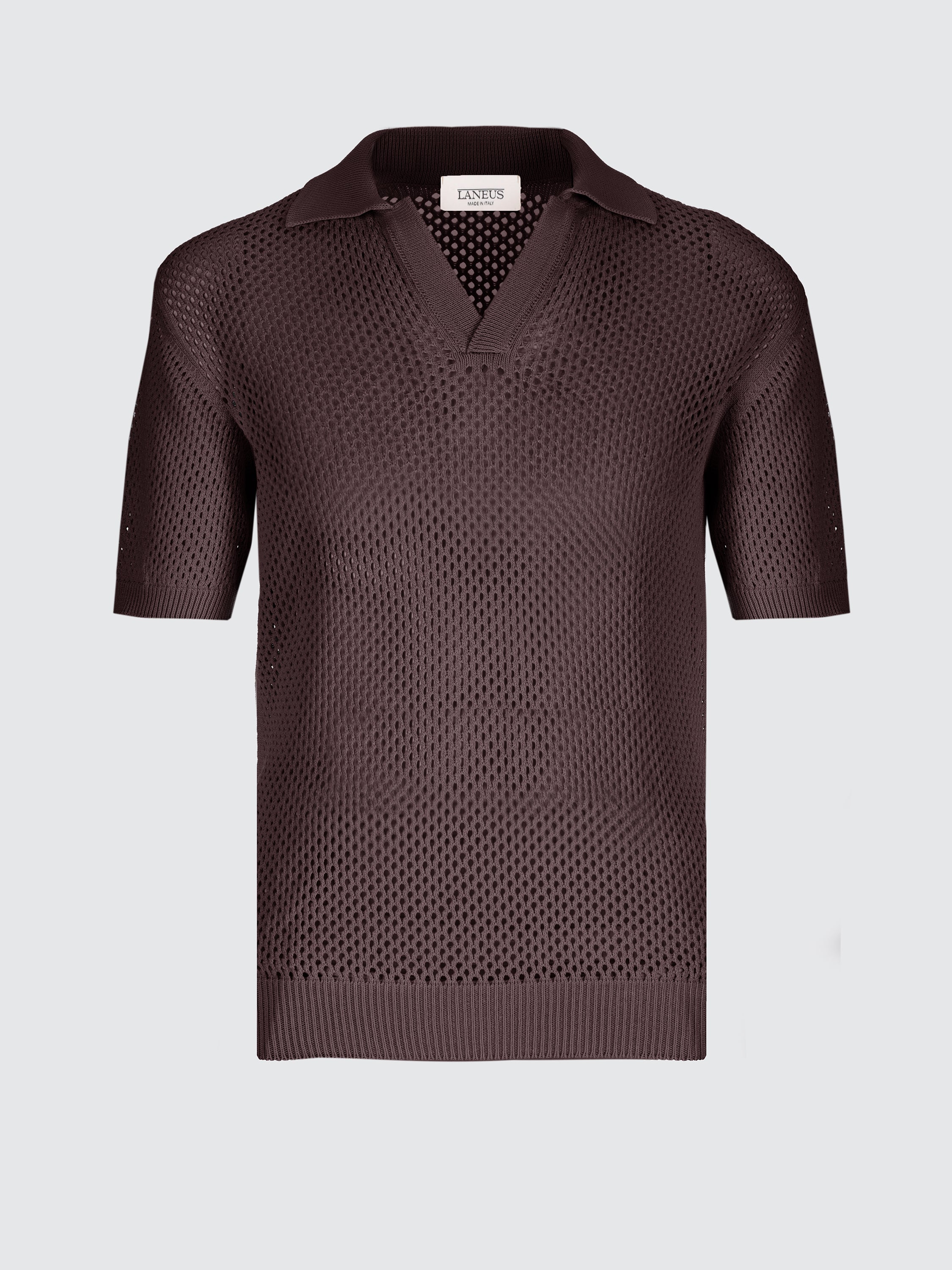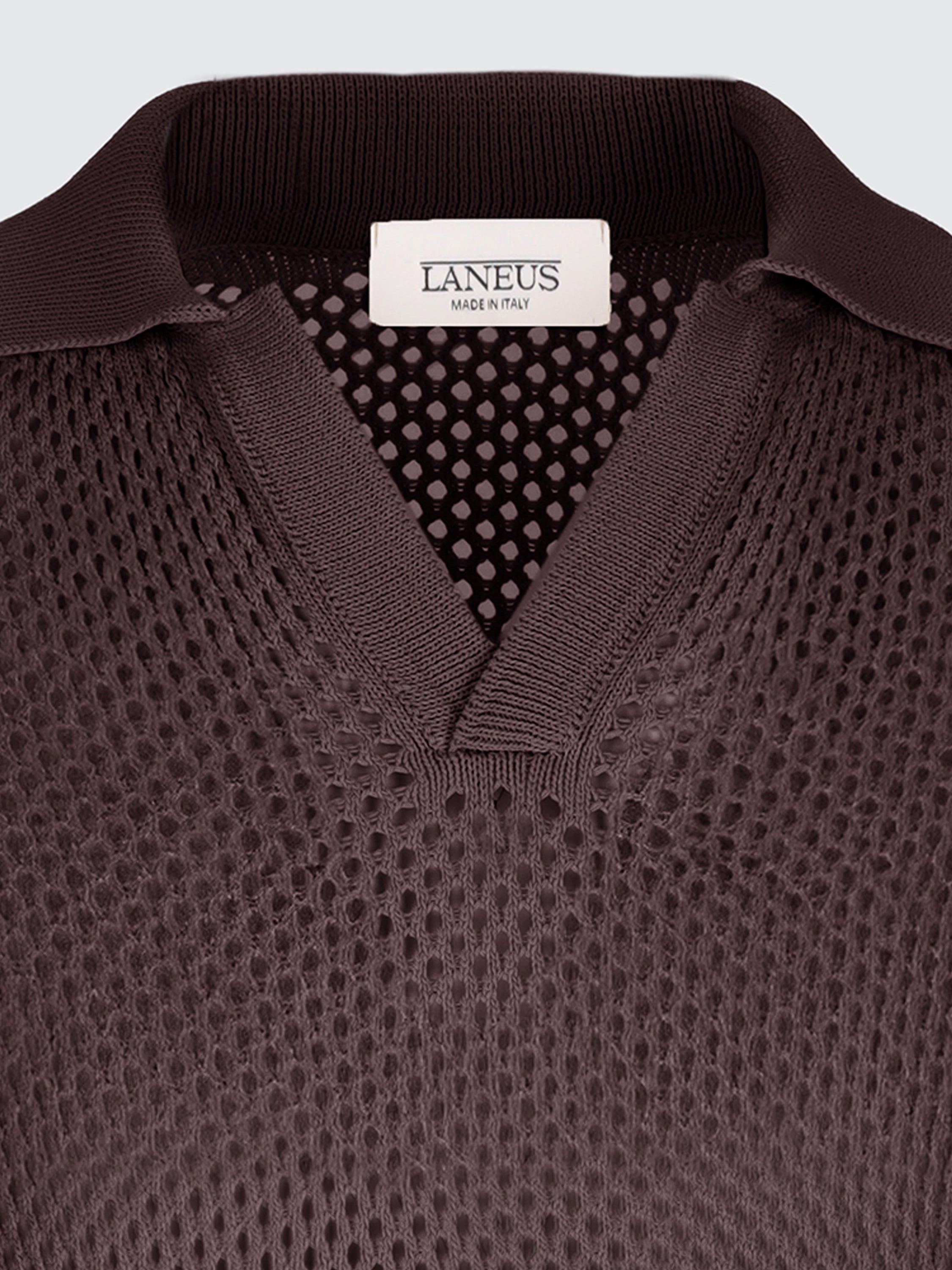La polo di Laneus è realizzata in pregiato filato caratterizzato da lavorazione in punto rete e presenta una silhouette regular con maniche corte, fessino profondo senza bottoni e il colletto all'italiana che ne definisce lo stile rilassato. Made in Italy. Il modello è alto 190 cm ed indossa una 48/M