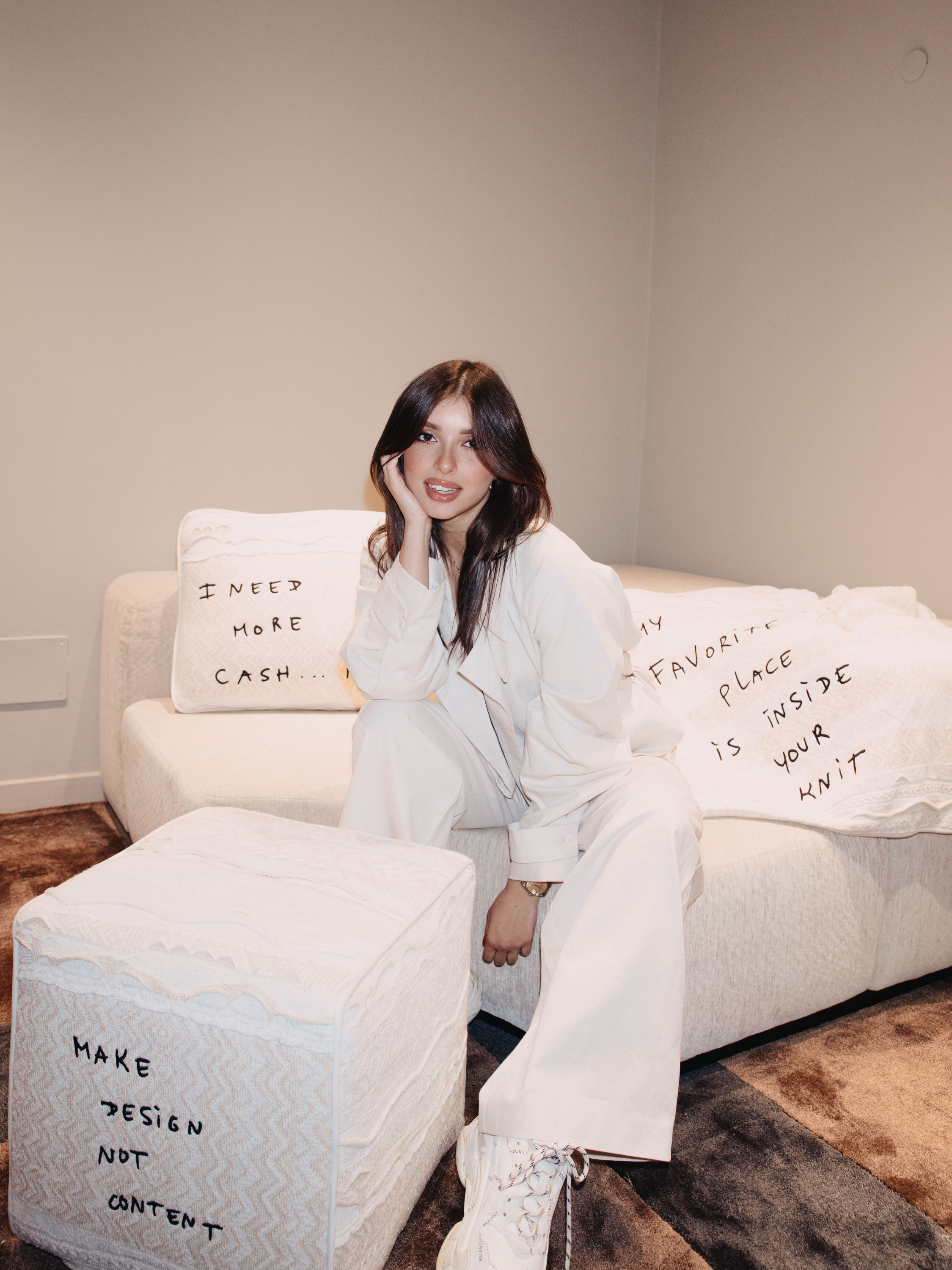 Questo puoffe ricercato e raffinato reinterpreta l’iconico jacquard Laneus attraverso tonalità neutre. Il design si arricchisce di dettagli piquet e cordonetti a rilievo, creando profondità ed effetti tridimensionali. Il mix di filati in cotone, con contrasti tra finiture lucide e opache e l’aggiunta di un morbido filo bouclé, conferisce un equilibrio armonioso tra fascino rustico ed eleganza sofisticata. Impreziosito da citazione inedita ricamata a contrasto dell'artista Thomas Lélu. Misure 40 x 40 x 40cm