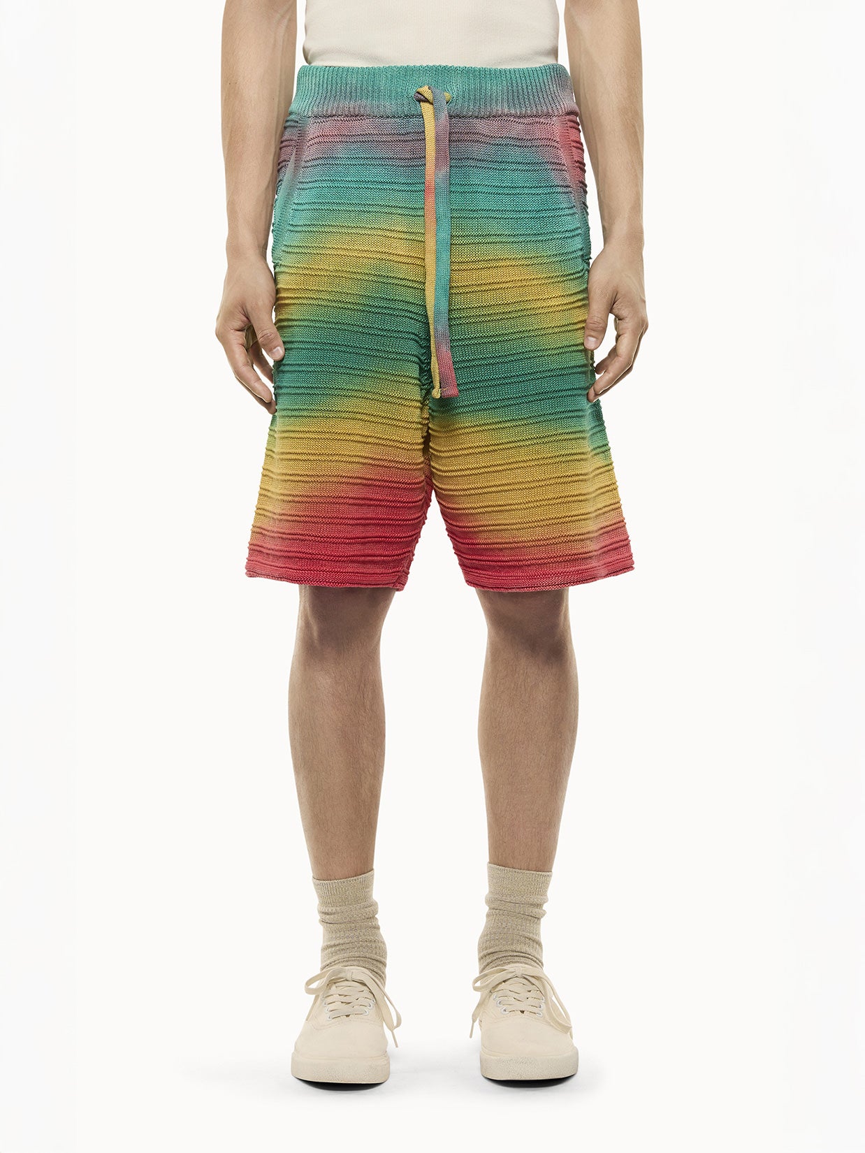 Shorts in maglia di cotone a vestibilità regular, realizzati in cotone con filato multicolor. La vita è regolabile con coulisse. Il design è definito da una lavorazione intrecciata. Il fondo ampio e le tasche sui lati completano il capo. Made in Italy.