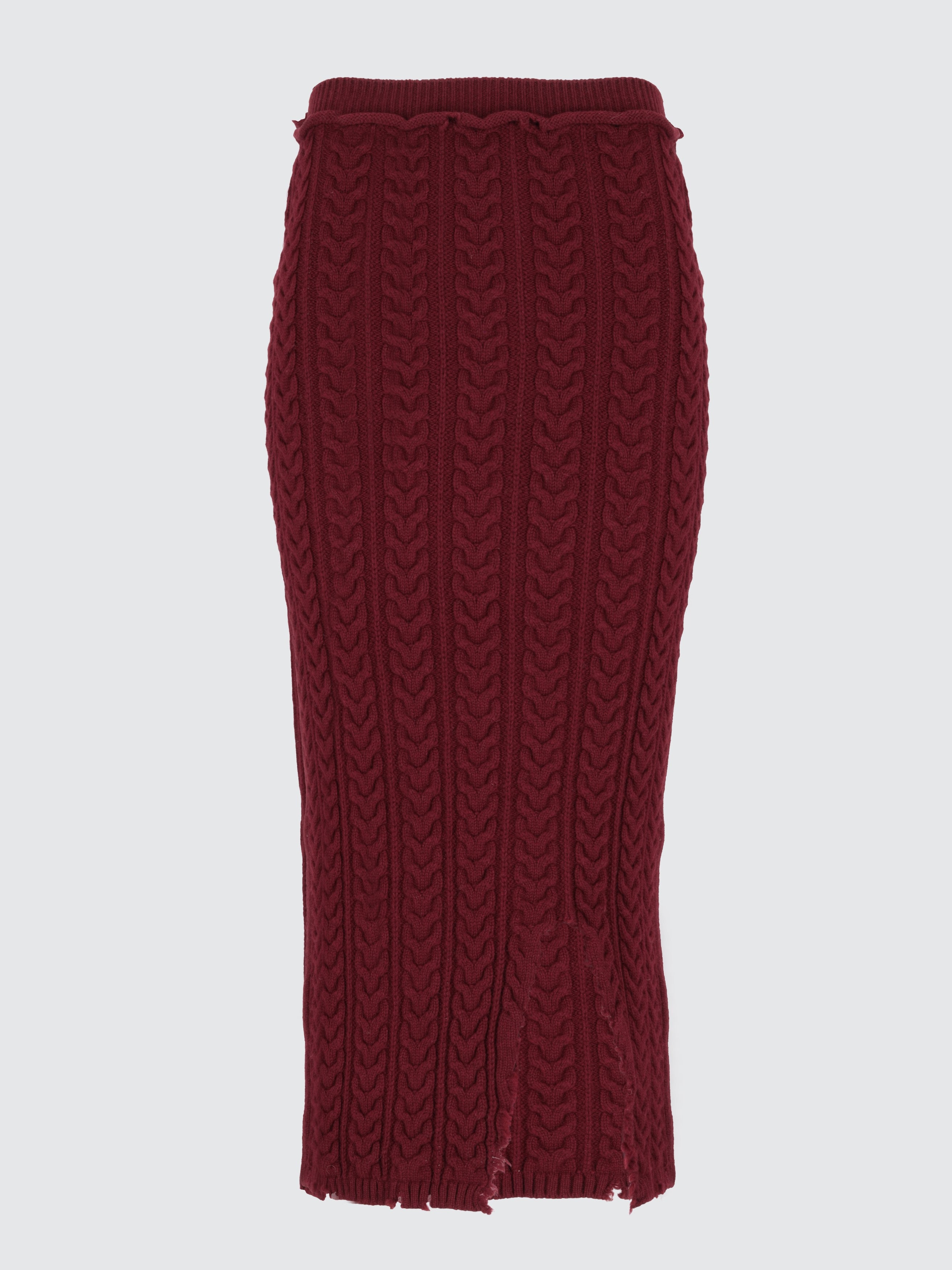 Linee pulite e dettagli materici per questa gonna firmata Laneus. Realizzata in un pregiato mix di lana merinos e cashmere, presenta una vestibilità regular e uno spacco laterale sinistro che dona movimento al capo. La lavorazione a trecce e le finiture a taglio vivo aggiungono un tocco contemporaneo a una silhouette essenziale ma sofisticata. Made in Italy.