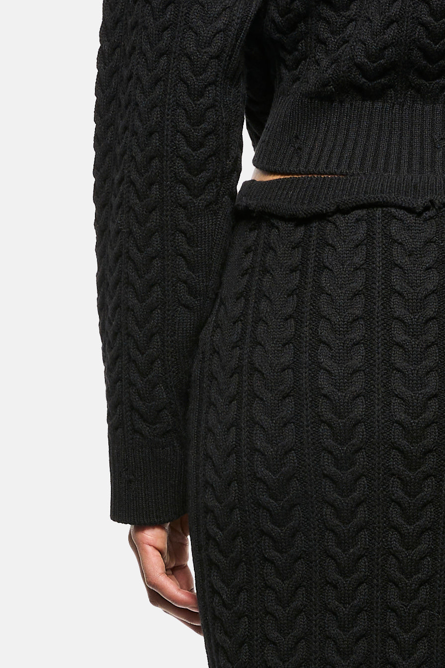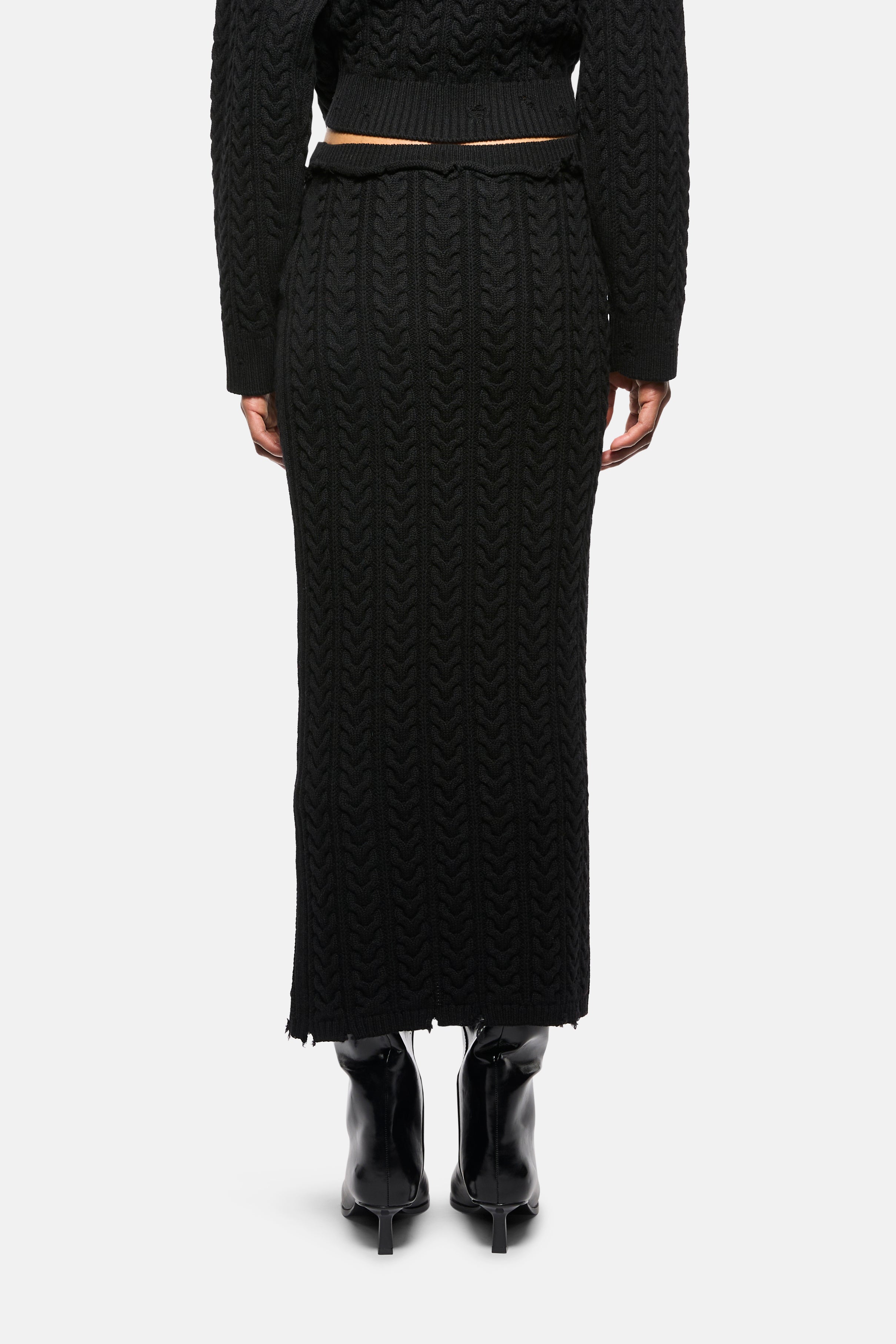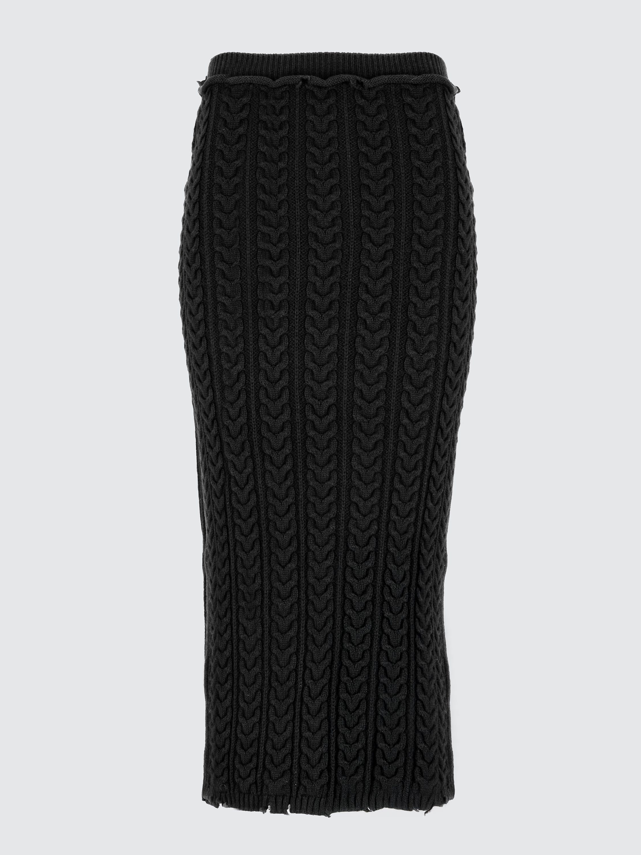 Linee pulite e dettagli materici per questa gonna firmata Laneus. Realizzata in un pregiato mix di lana merinos e cashmere, presenta una vestibilità regular e uno spacco laterale sinistro che dona movimento al capo. La lavorazione a trecce e le finiture a taglio vivo aggiungono un tocco contemporaneo a una silhouette essenziale ma sofisticata. Made in Italy.