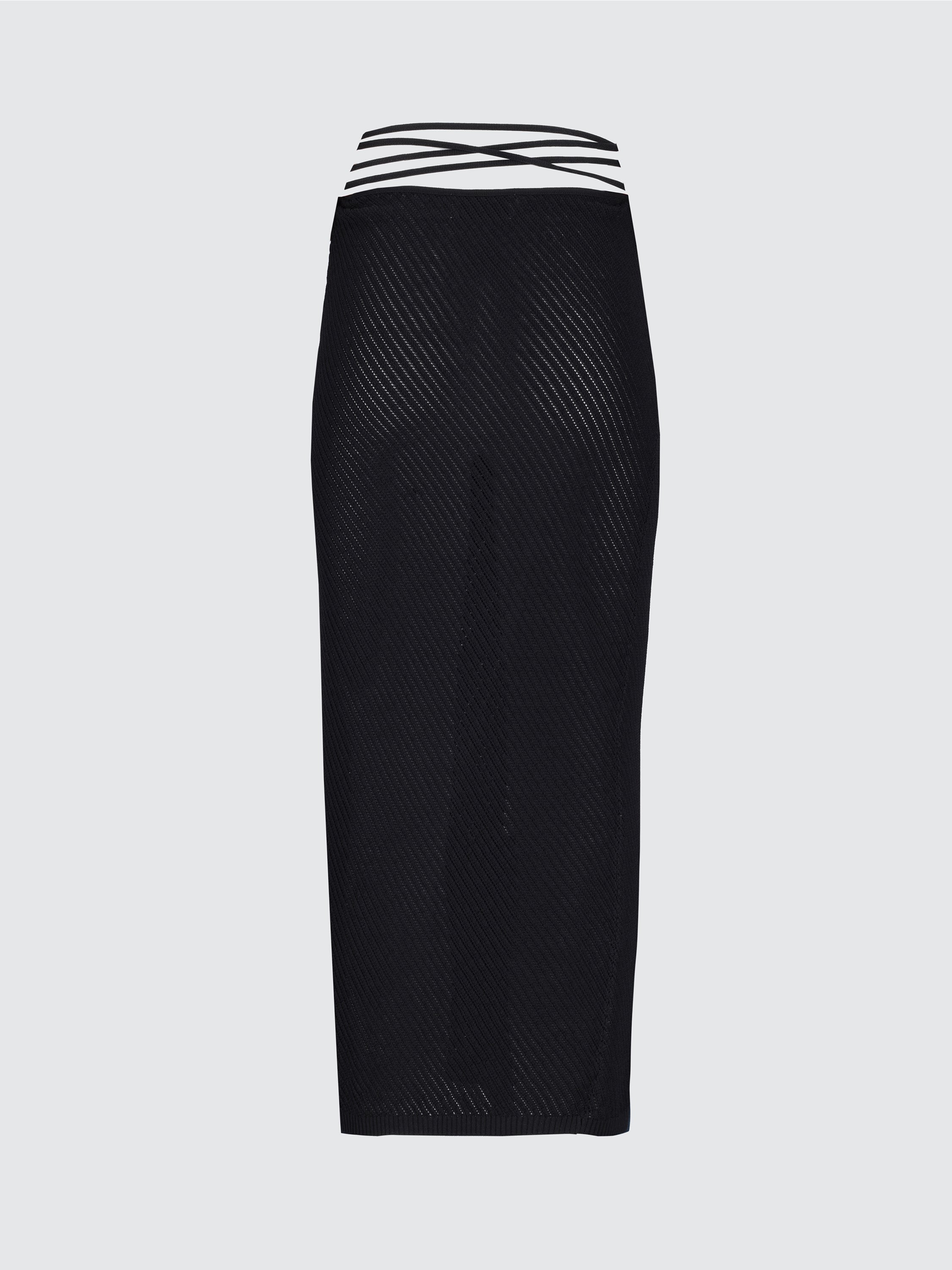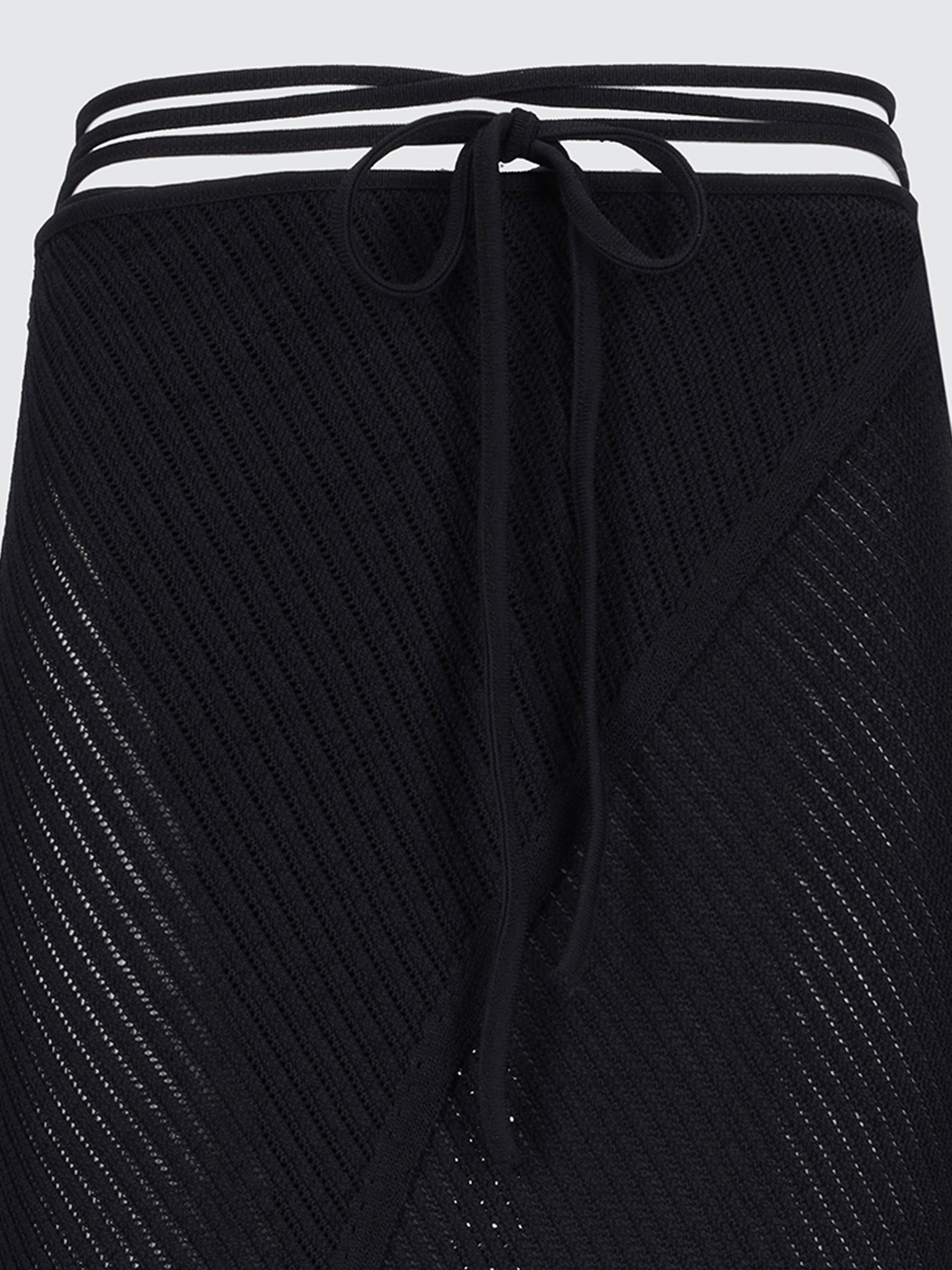 Ha un carattere vibrante dai toni estivi, questa gonna di Laneus realizzata in maglia e caratterizzata da punto traforato diagonale definita da una lunga silhouette a portafoglio con allacciatura sul fianco.