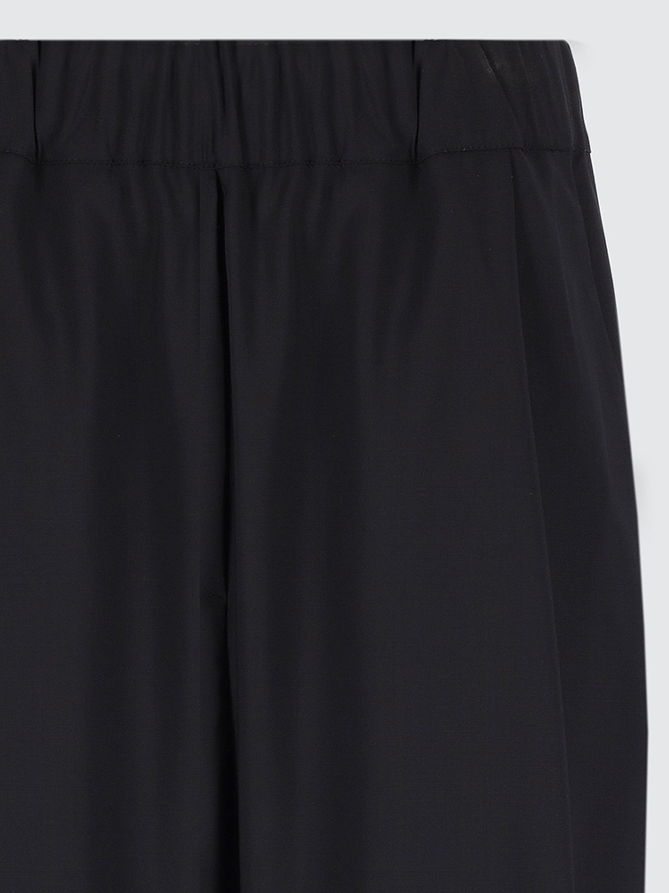 Pantalone a gamba larga monopence di Laneus è realizzato in leggerissima tela di lana, presenta una vita con elastico arricciato e tasca americana.