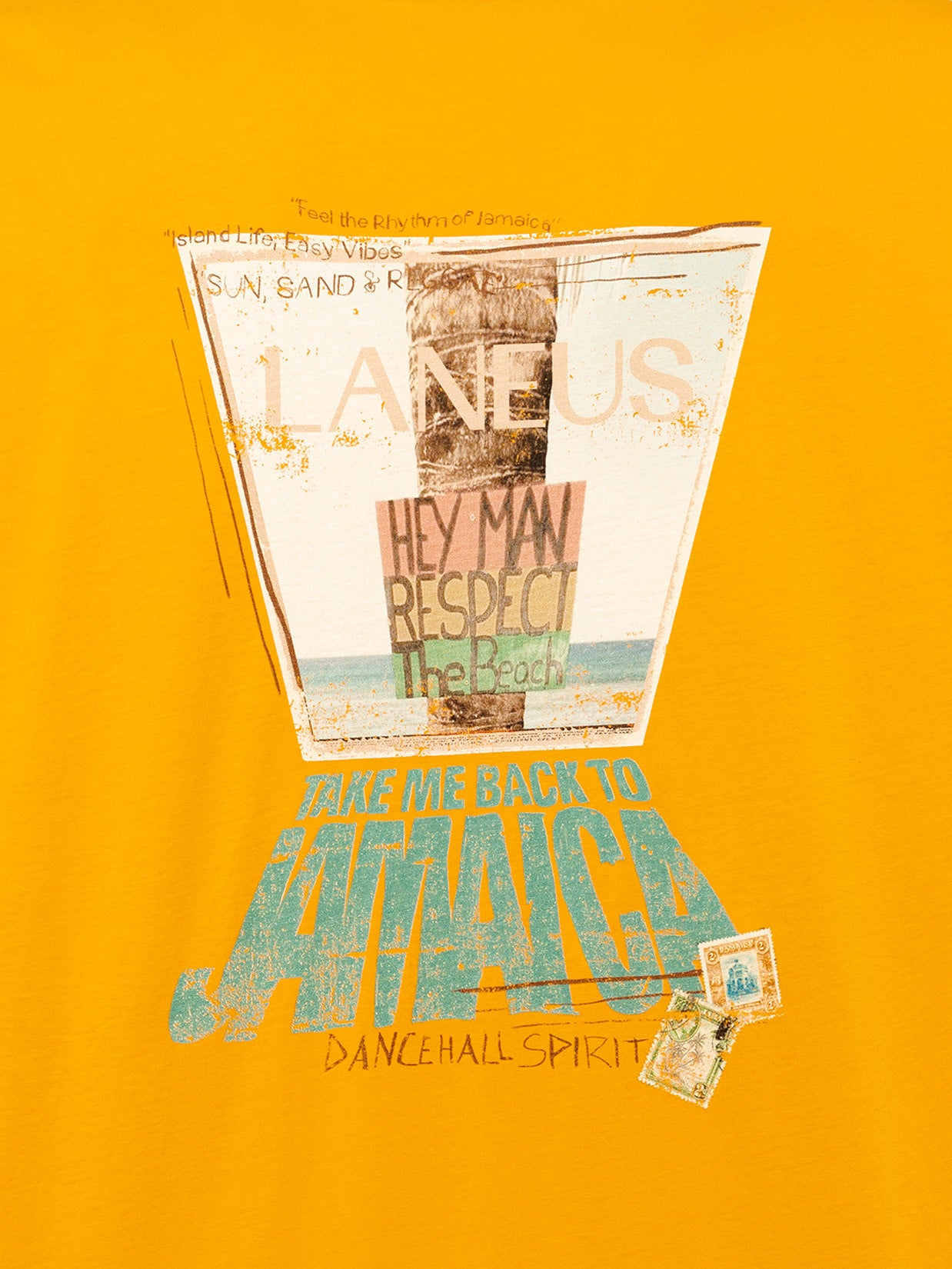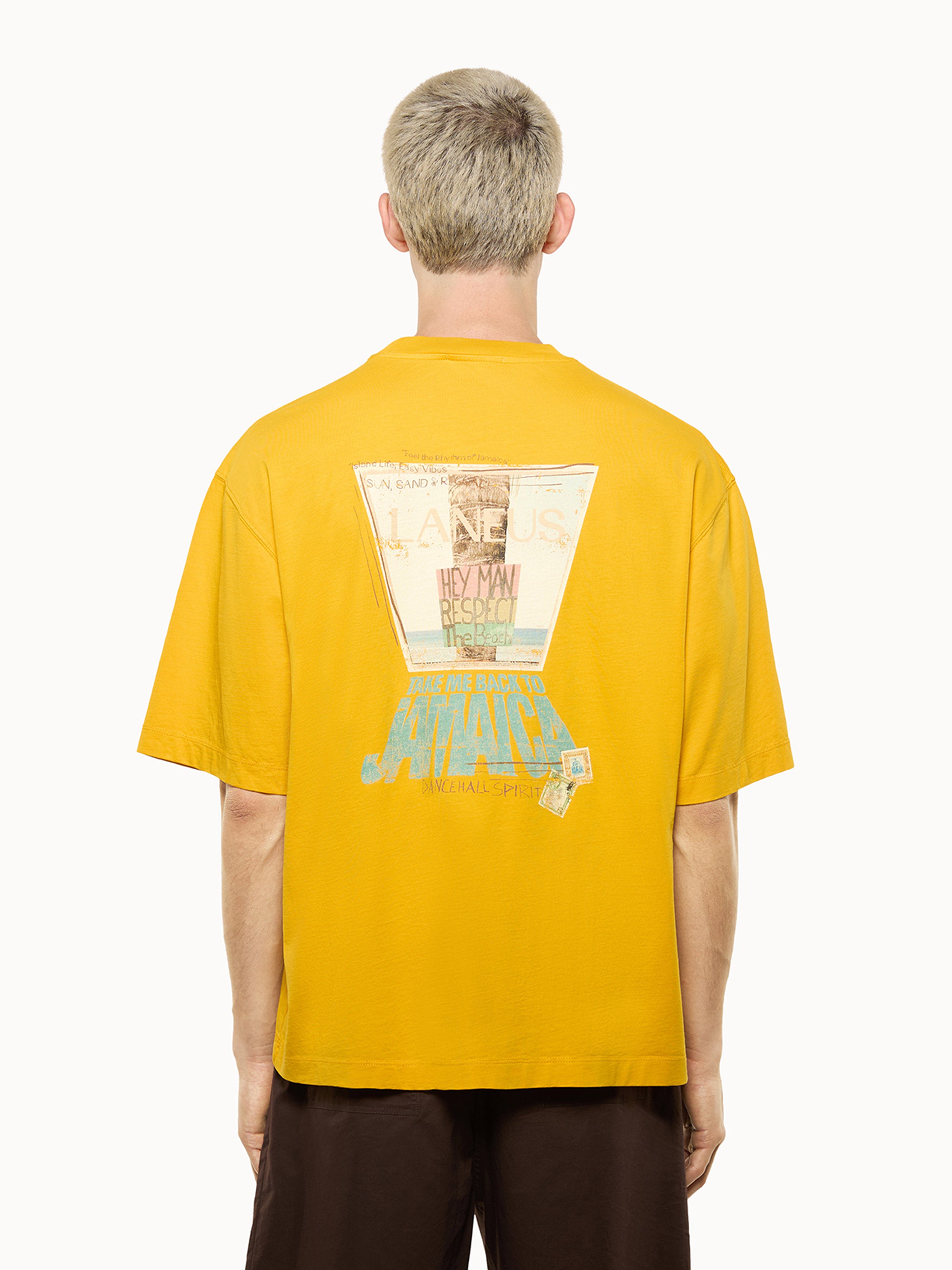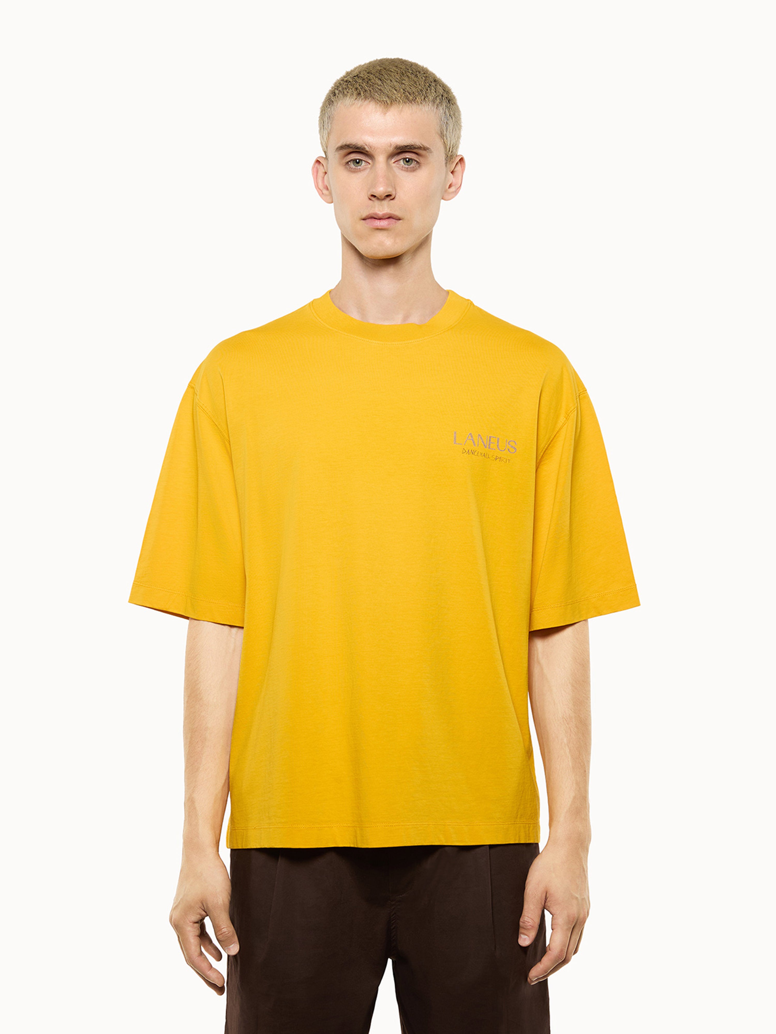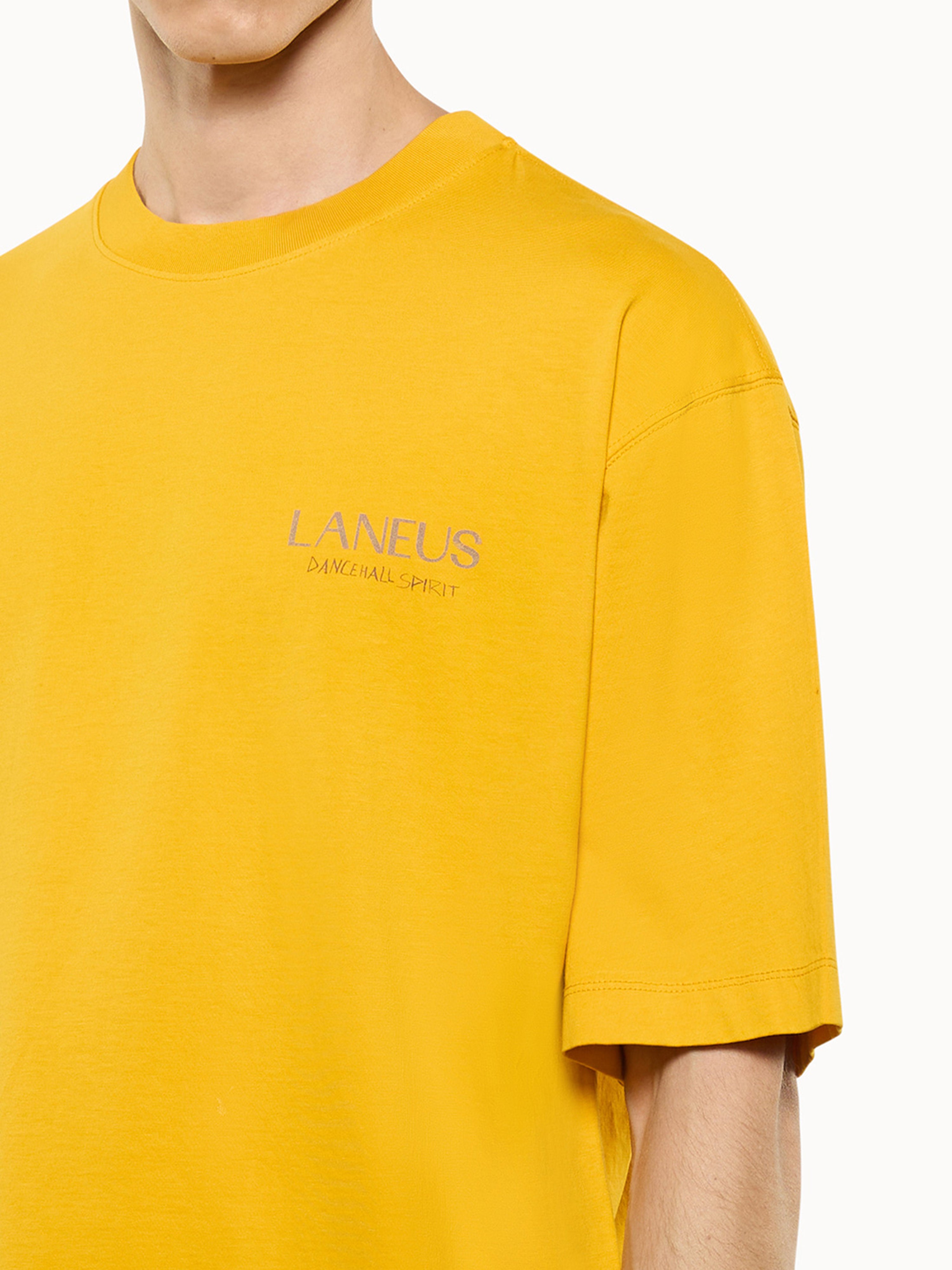 Linee over e maxi stampa sul retro per questa T-shirt in 100% cotone firmata Laneus. Il modello presenta una vestibilità rilassata. Un capo essenziale, dallo stile pop e distintivo. Made in Italy.