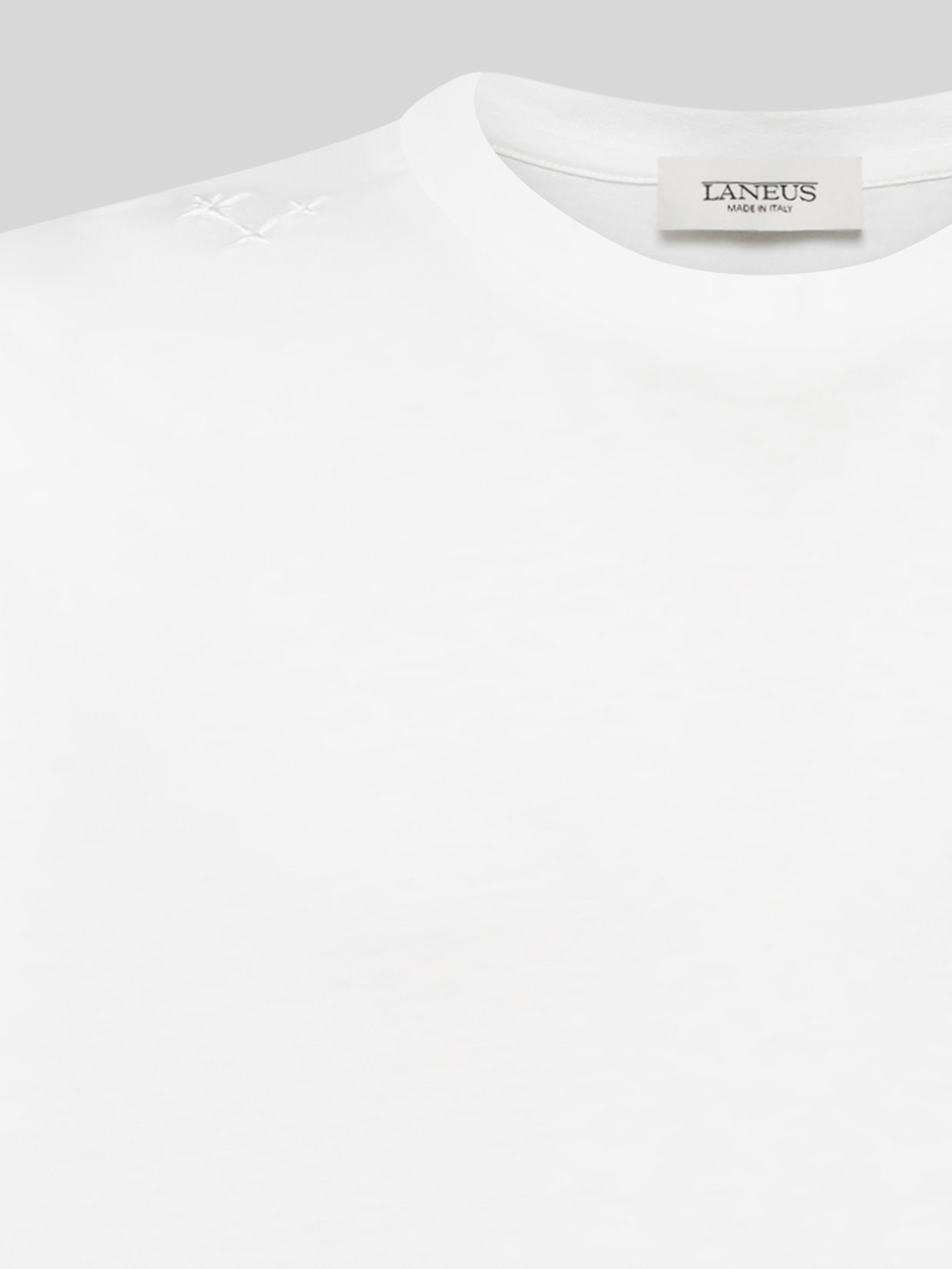 Linee over e design minimal per questa T-shirt in 100% cotone firmata Laneus. Il modello presenta una vestibilità rilassata. Un capo essenziale, dallo stile pop e distintivo. Made in Italy.