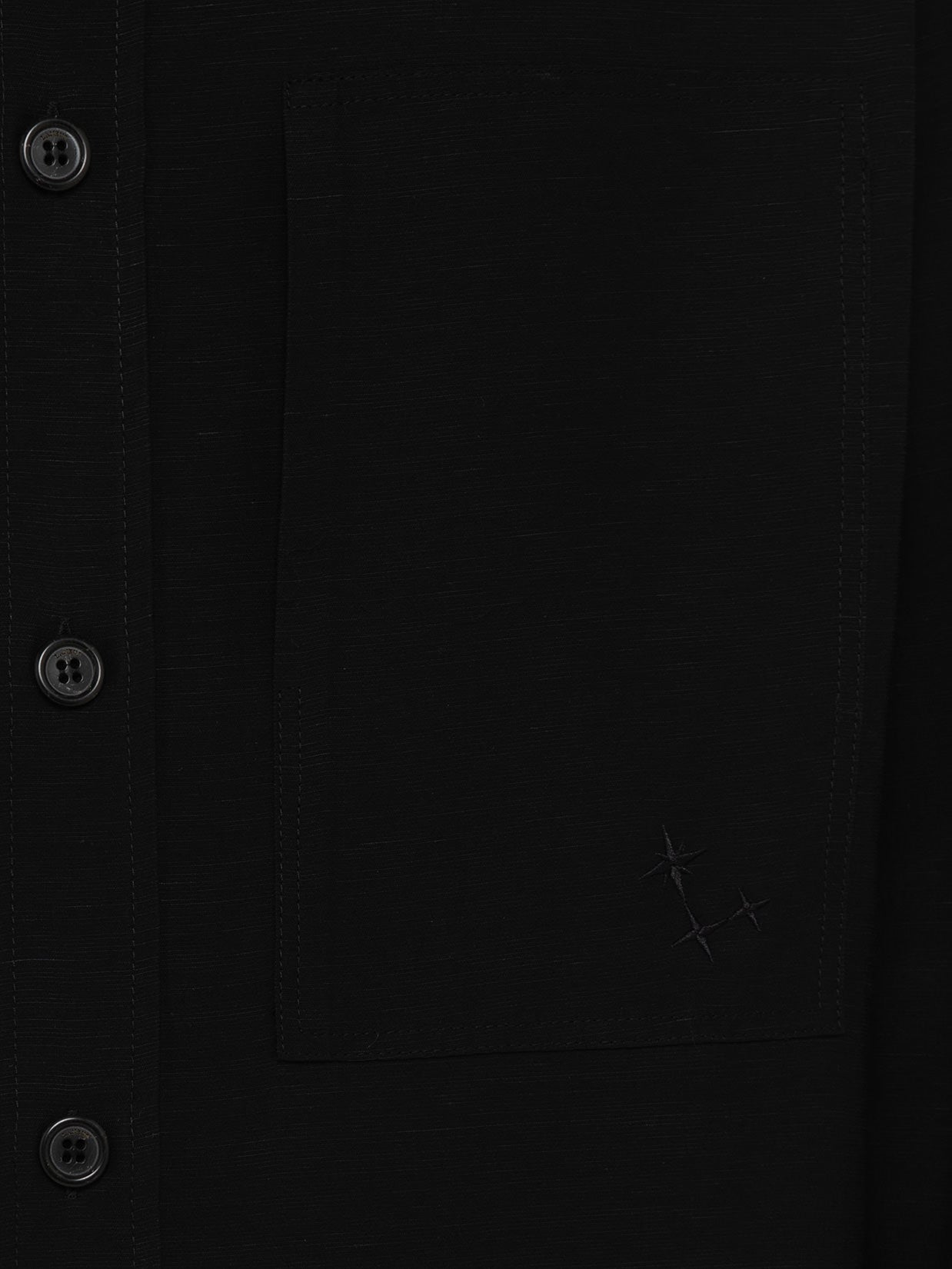 Overshirt in viscosa e lino con bottoni frontali. Doppia maxi tasca caratterizzata da ricamo ton sur ton. Vestibilità over. Made in Italy.