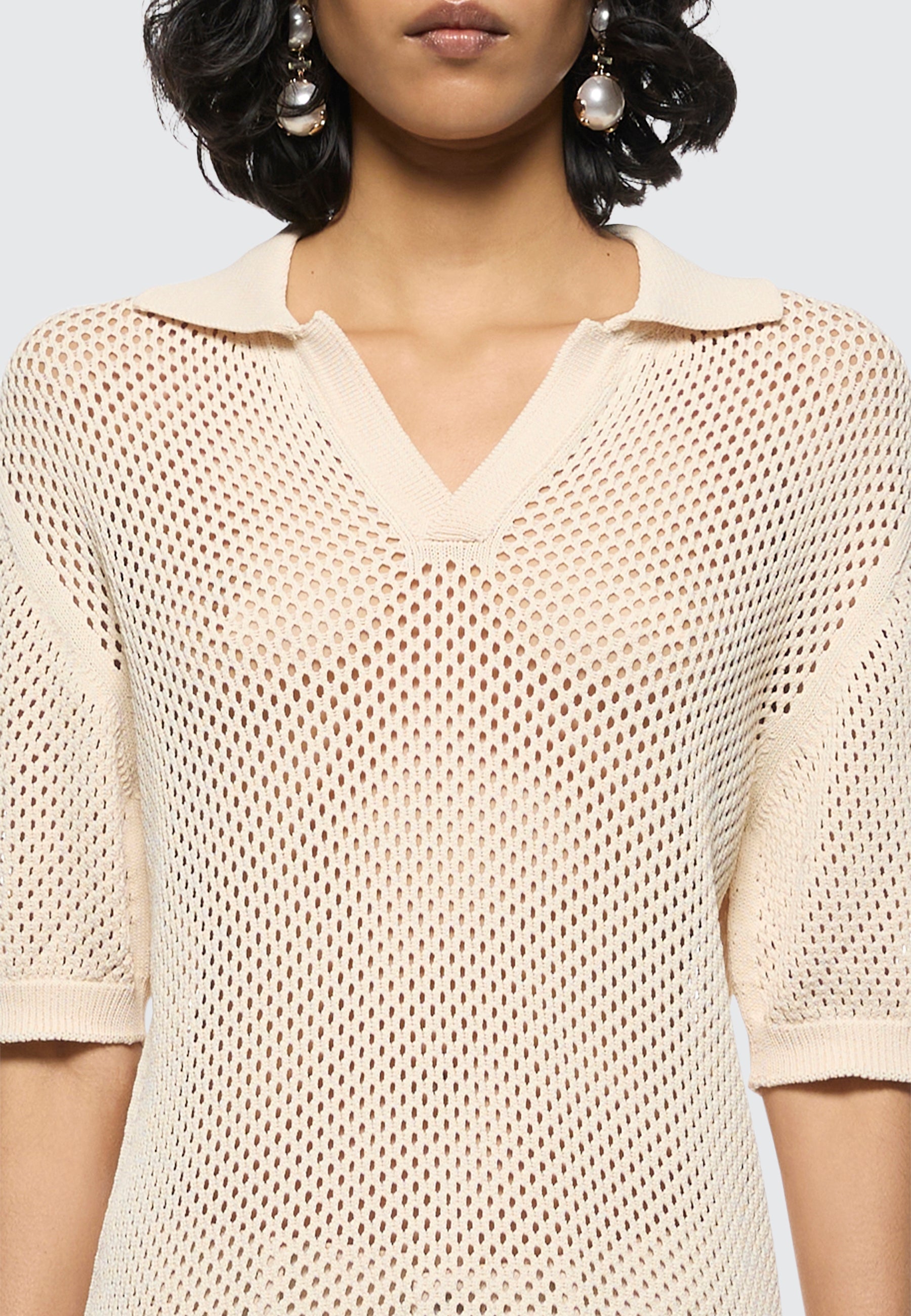 La polo di Laneus è realizzata in pregiato filato caratterizzato da lavorazione in punto rete e presenta una silhouette regular con maniche corte, fessino profondo senza bottoni e il colletto all'italiana che ne definisce lo stile rilassato. Made in Italy. La modella in foto è alta 180 cm ed indossa una M.