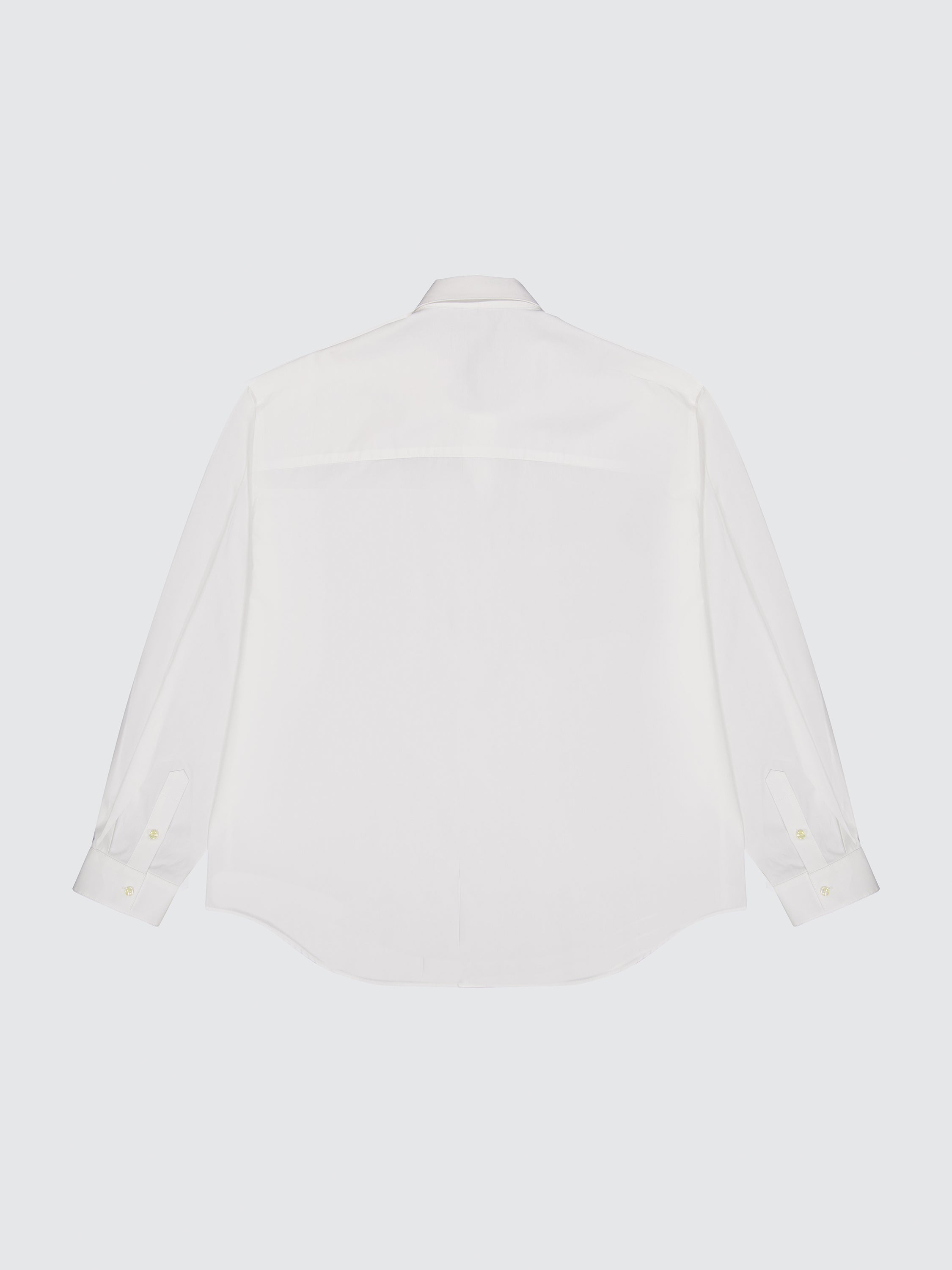 La camicia di Laneus è realizzata in popeline di cotone e presenta una silhouette boxy over fit a maniche corte, un colletto all'italiana con chiusura button-down e un taschino a toppa sul lato. La taglia CM40 corrisponde a una M/48.