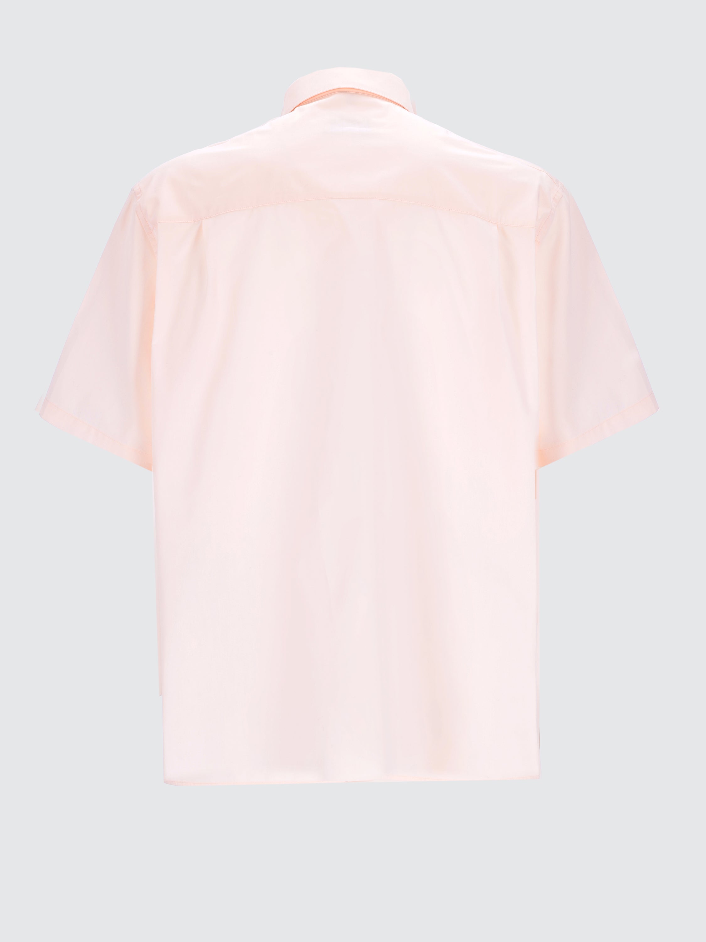 La camicia di Laneus è realizzata in popeline di cotone e presenta una silhouette boxy over fit a maniche corte, un colletto all'italiana con chiusura button-down e un taschino a toppa sul lato.