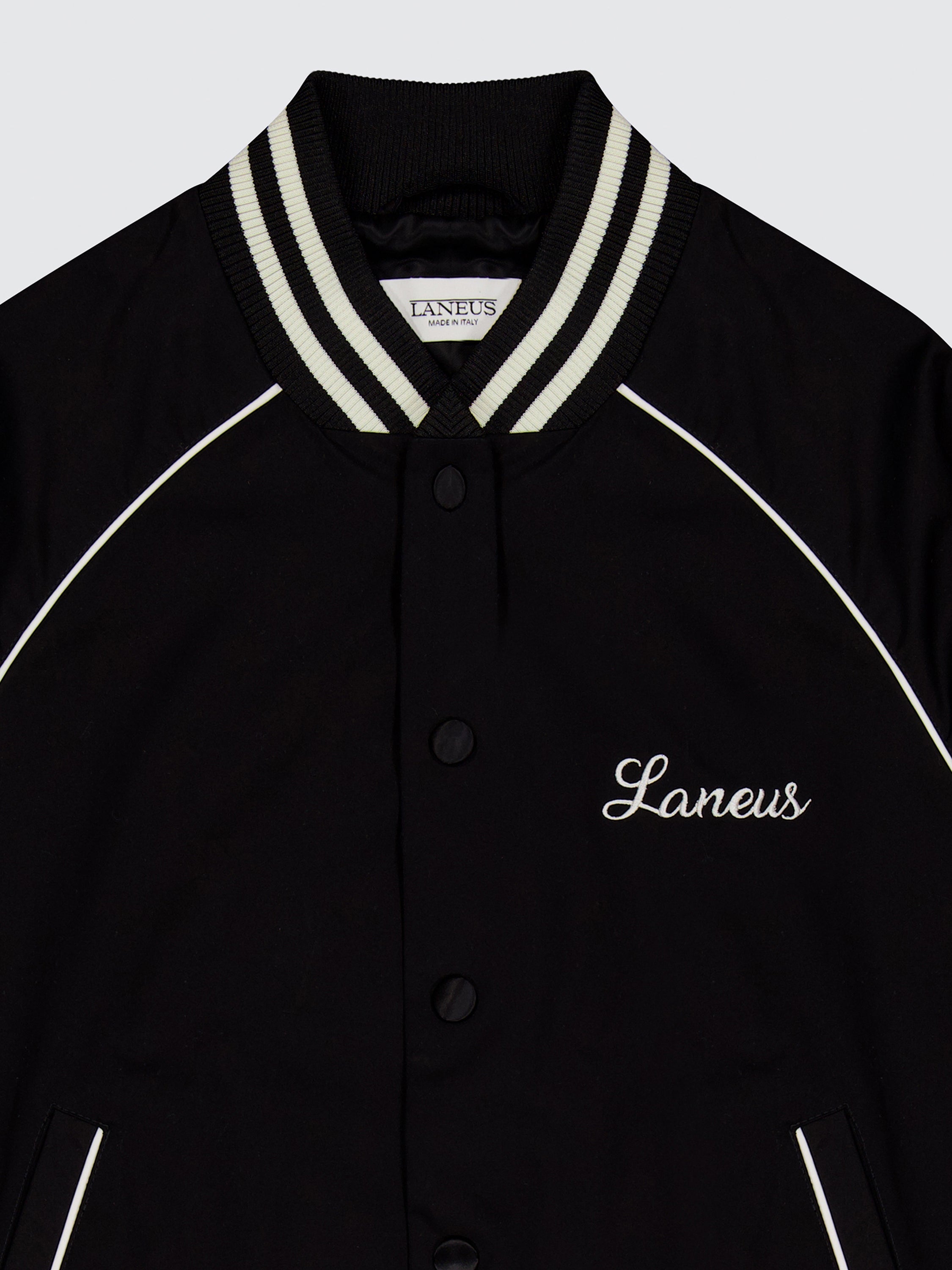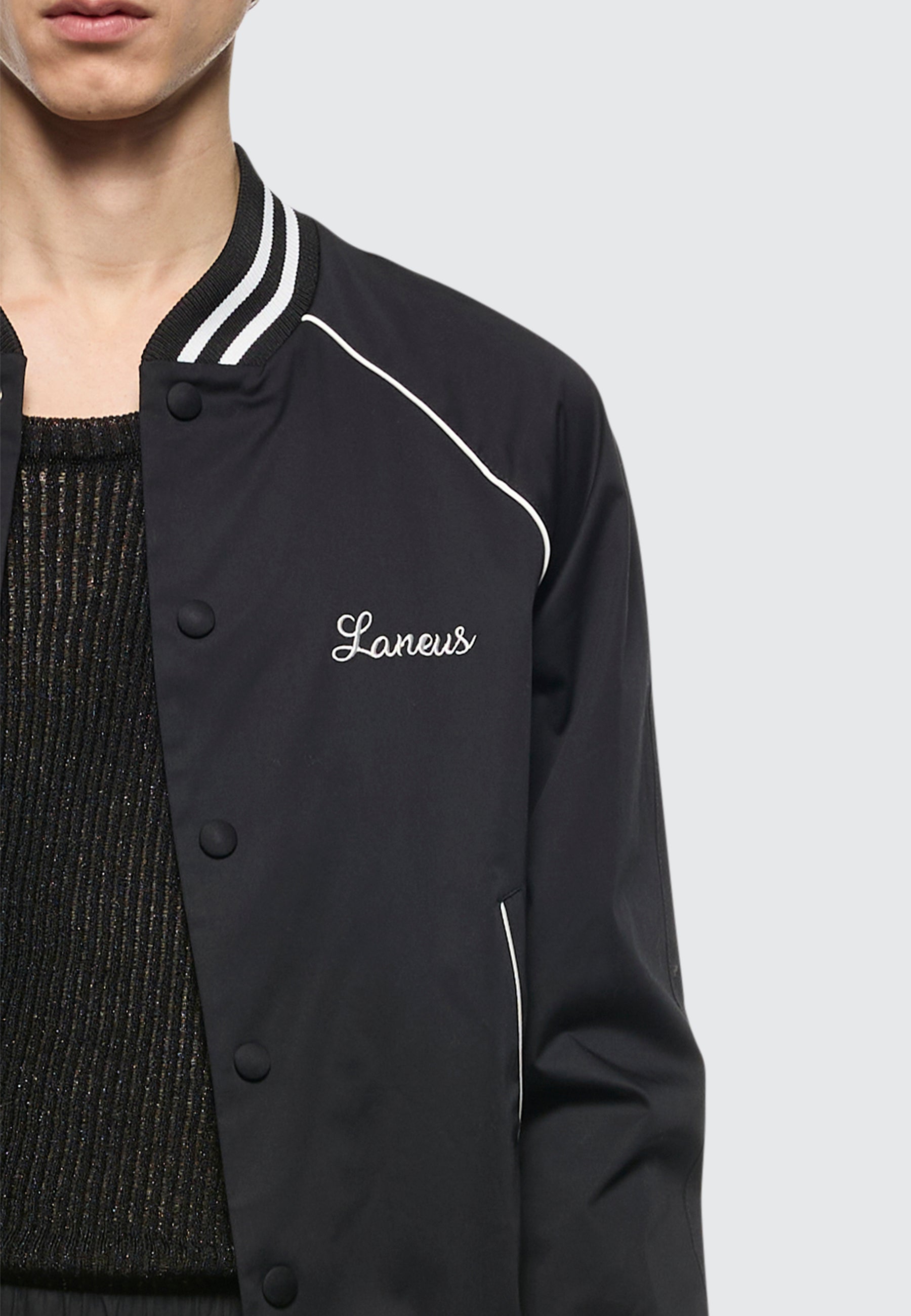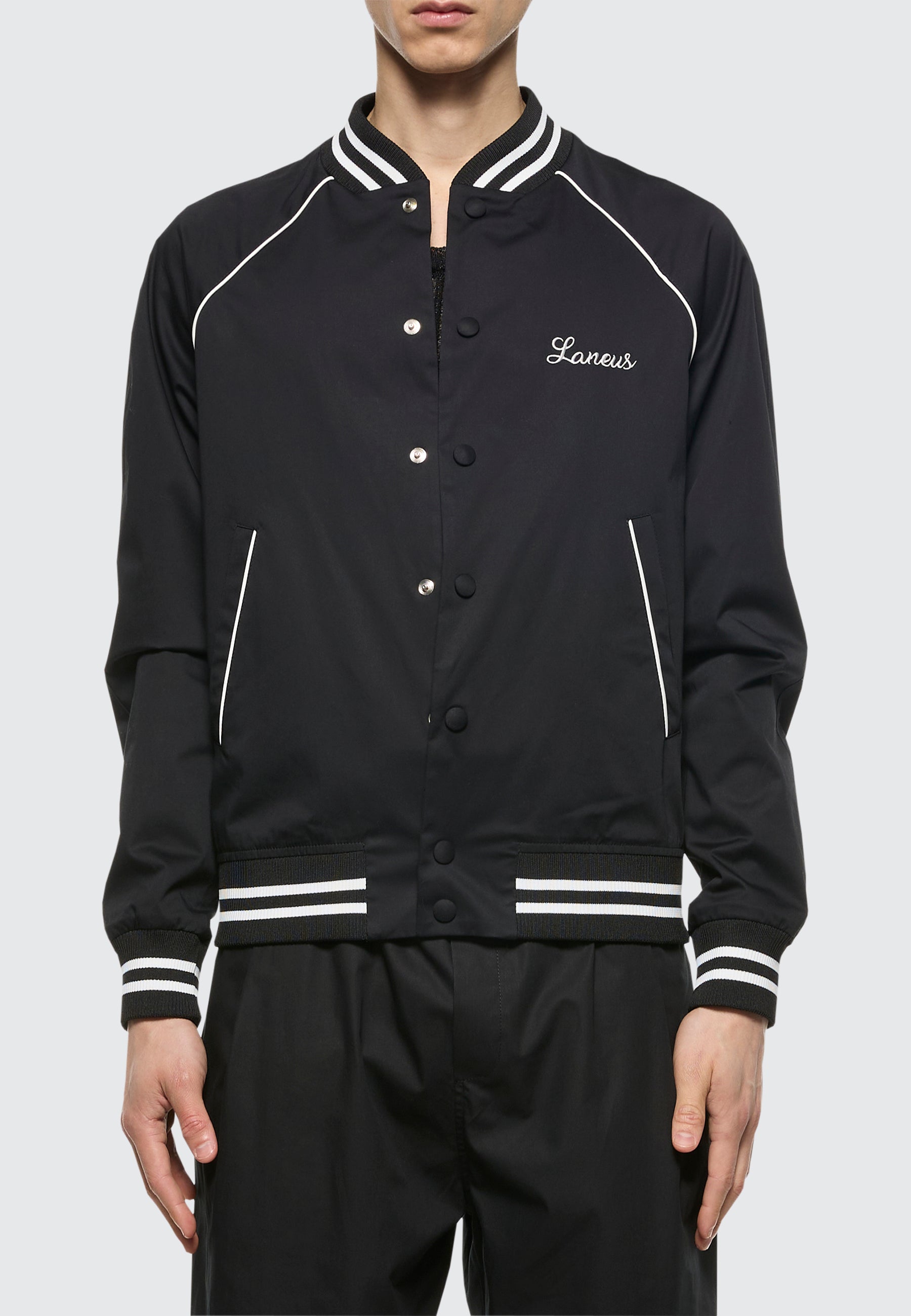 La silhouette regular di questo bomber di Lanues è perfetta da indossare in qualsiasi momento della giornata. Il modello stile college presenta due tasche monofiletto frontali, e giromanica regland. Realizzato in Italia in raso di cotone lucido. Il modello è alto 190 cm ed indossa una 48/M.