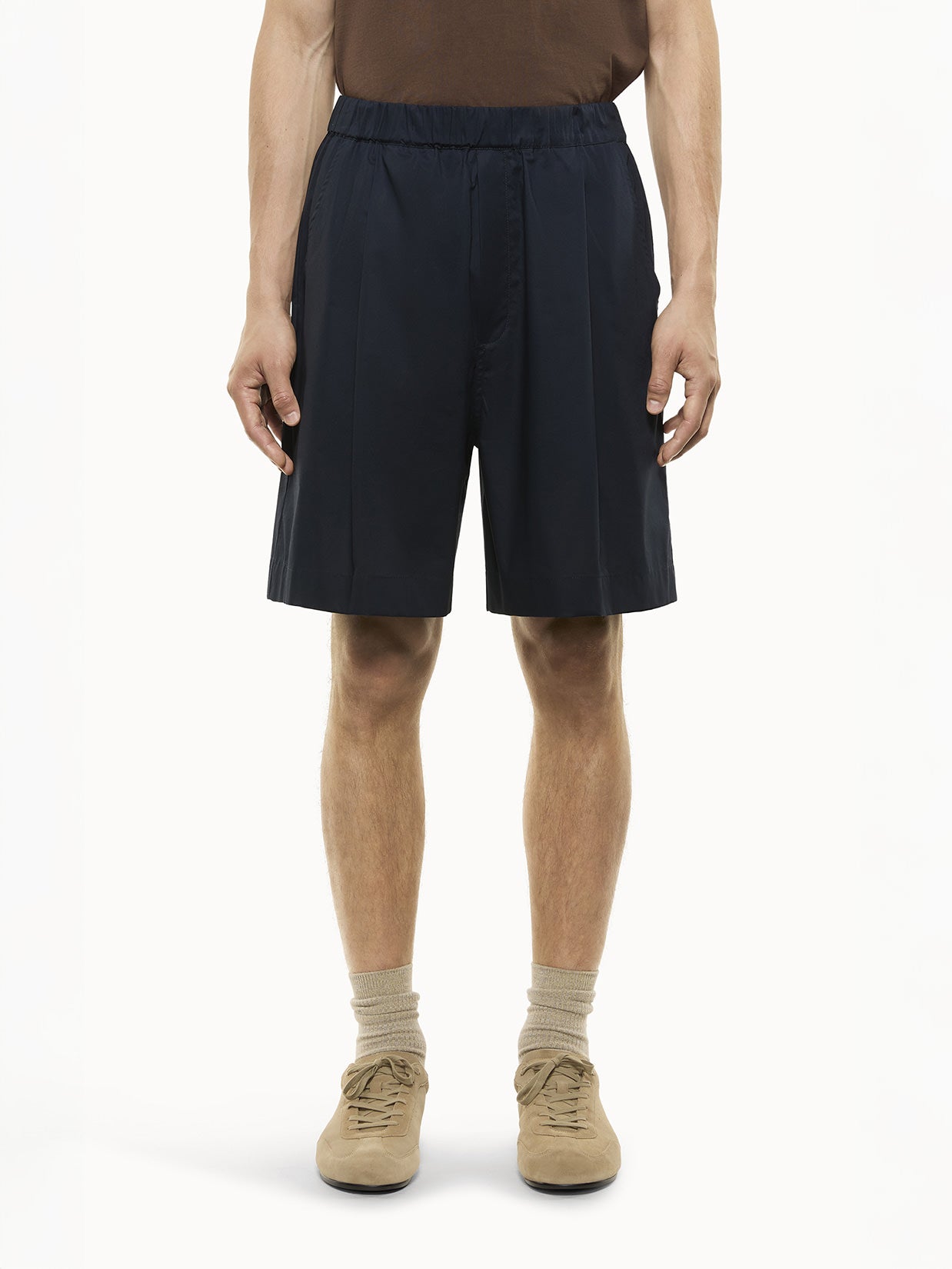 Valida scelta per la bella stagione, gli shorts in cotone di Laneus si presentano con una gamba larga e sono ripresi da una vita arricciata e tasca all'americana.
