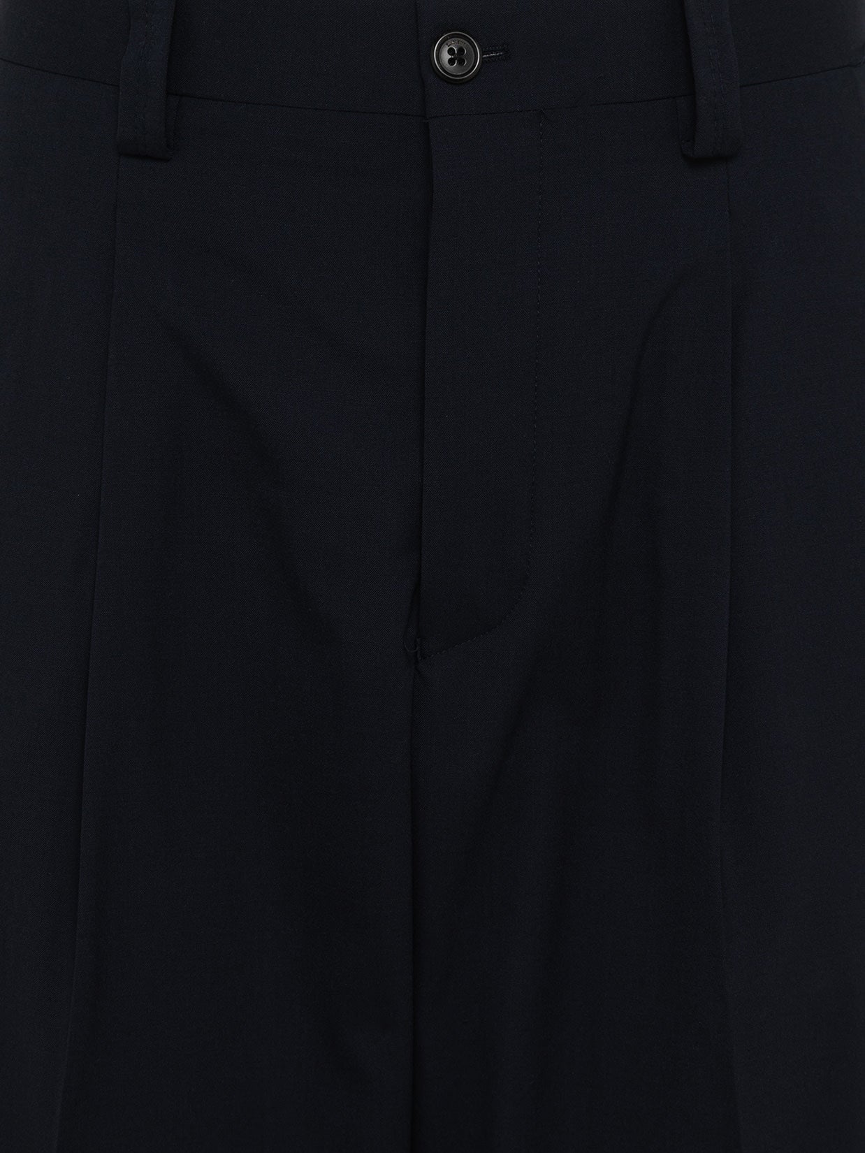 Pantalone firmato Laneus realizzato in fresco lana tinta unita, caratterizzato da un design essenziale ma curato nei dettagli. Presenta una chiusura con bottoni, riprese sul davanti che donano struttura alla linea, tasche alla francese sui lati e due tasche con patta sul retro. Il tessuto leggero e l’estetica elegante e versatile lo rende adatto sia a contesti formali che informali. Made in Italy.