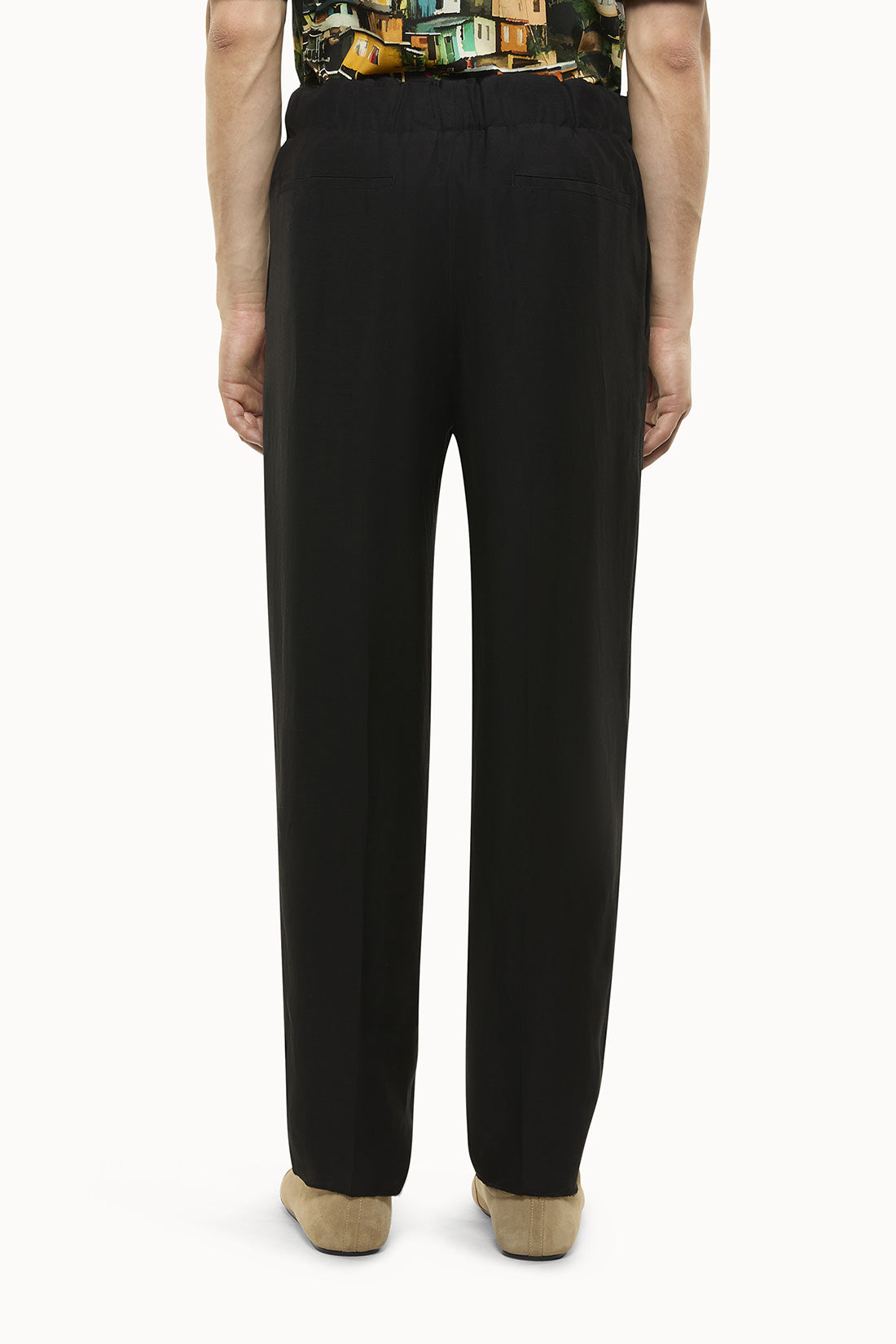 Pantalone firmato Laneus in tessuto leggero misto lino, caratterizzato da un design essenziale ma curato nei dettagli. Presenta un comodo elastico in vita con finta patta, riprese sul davanti che donano struttura alla linea, tasche alla francese sui lati e due tasche a filetto sul retro. Chiusura con gancio interno in vita e zip. Il tessuto leggero e traspirante lo rende ideale per la stagione più calda, con un’estetica elegante e versatile adatta sia a contesti formali che informali. Made in Italy.