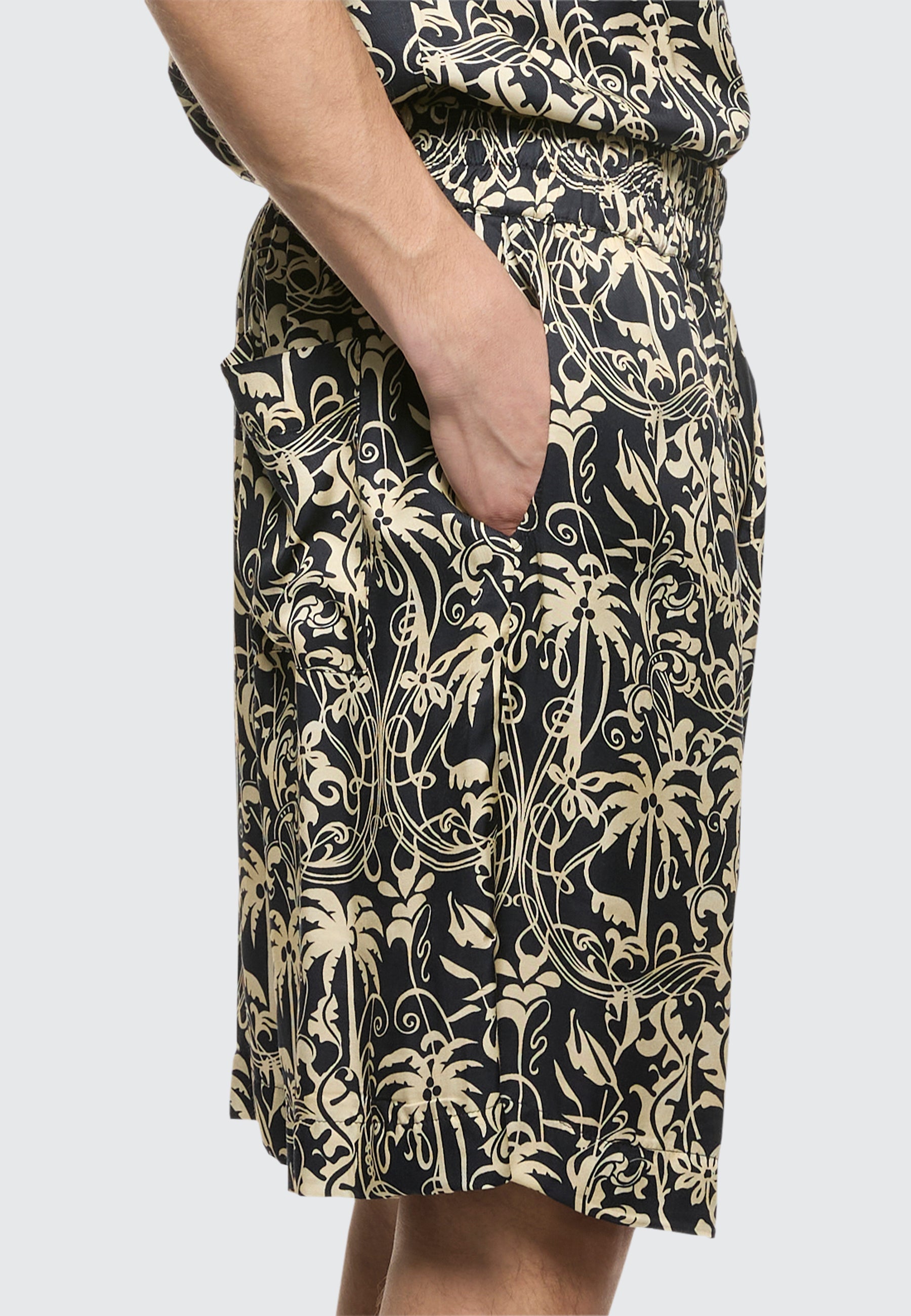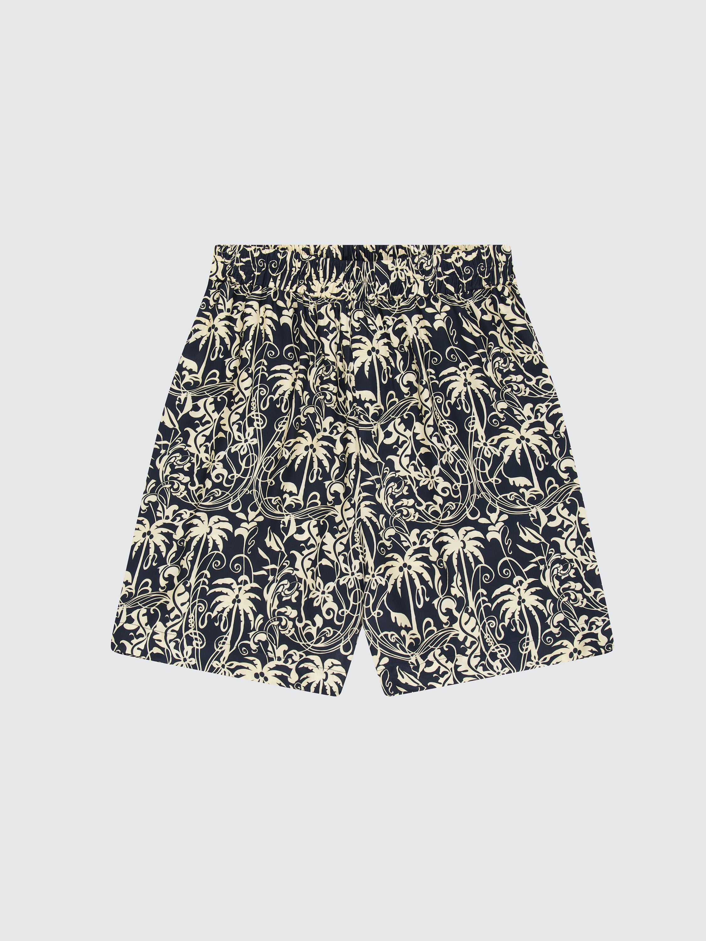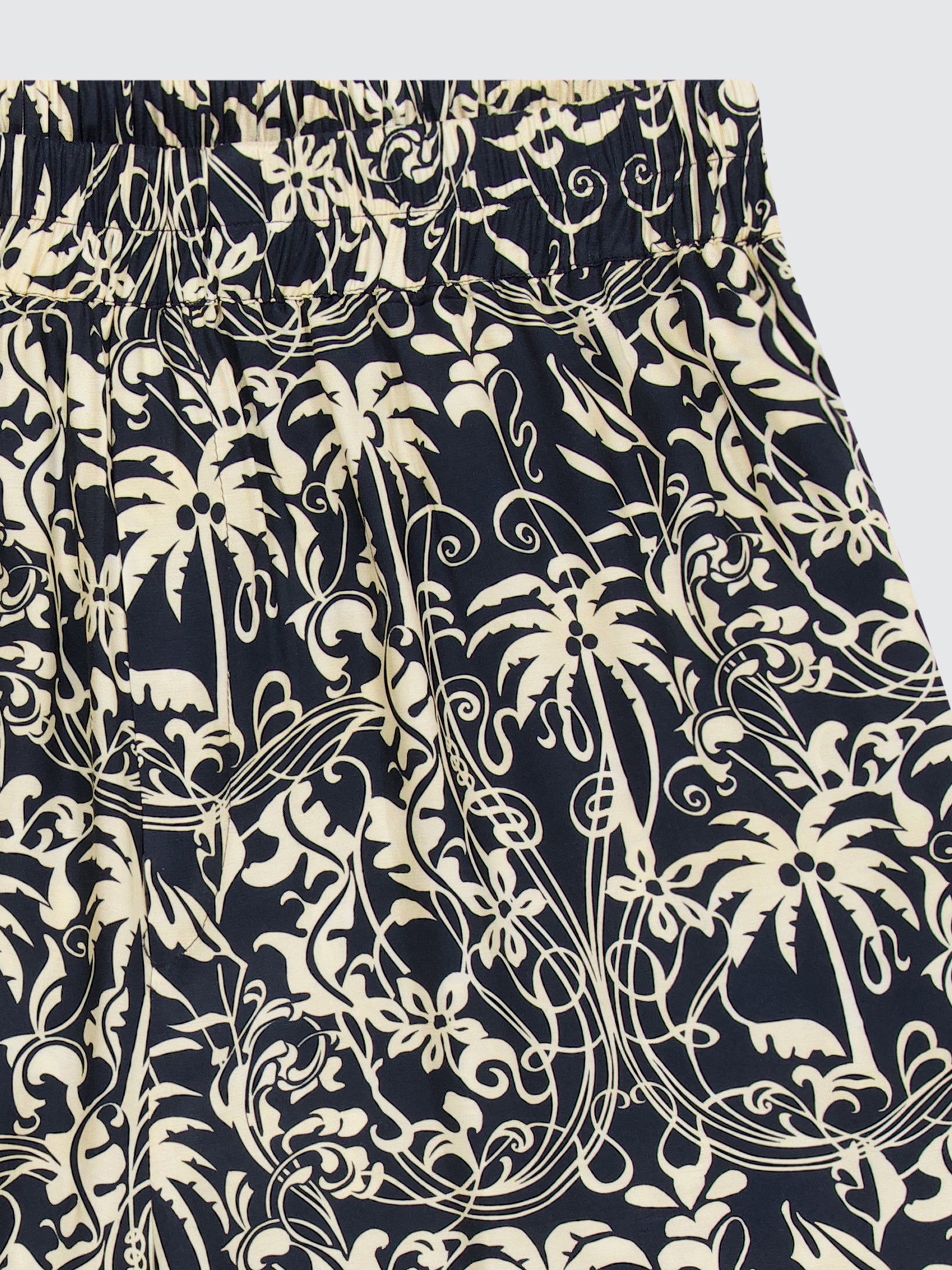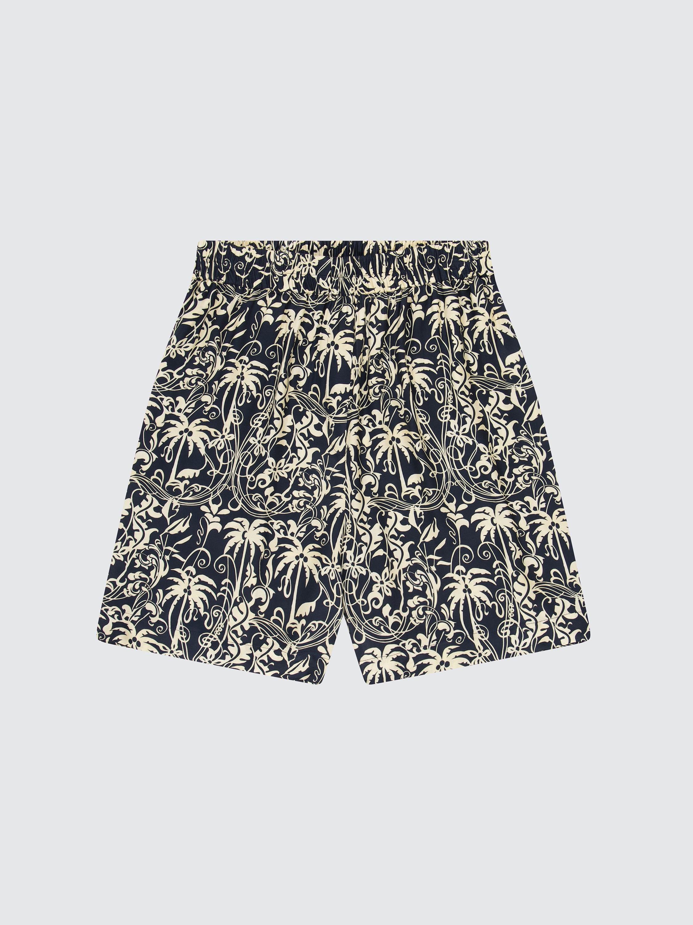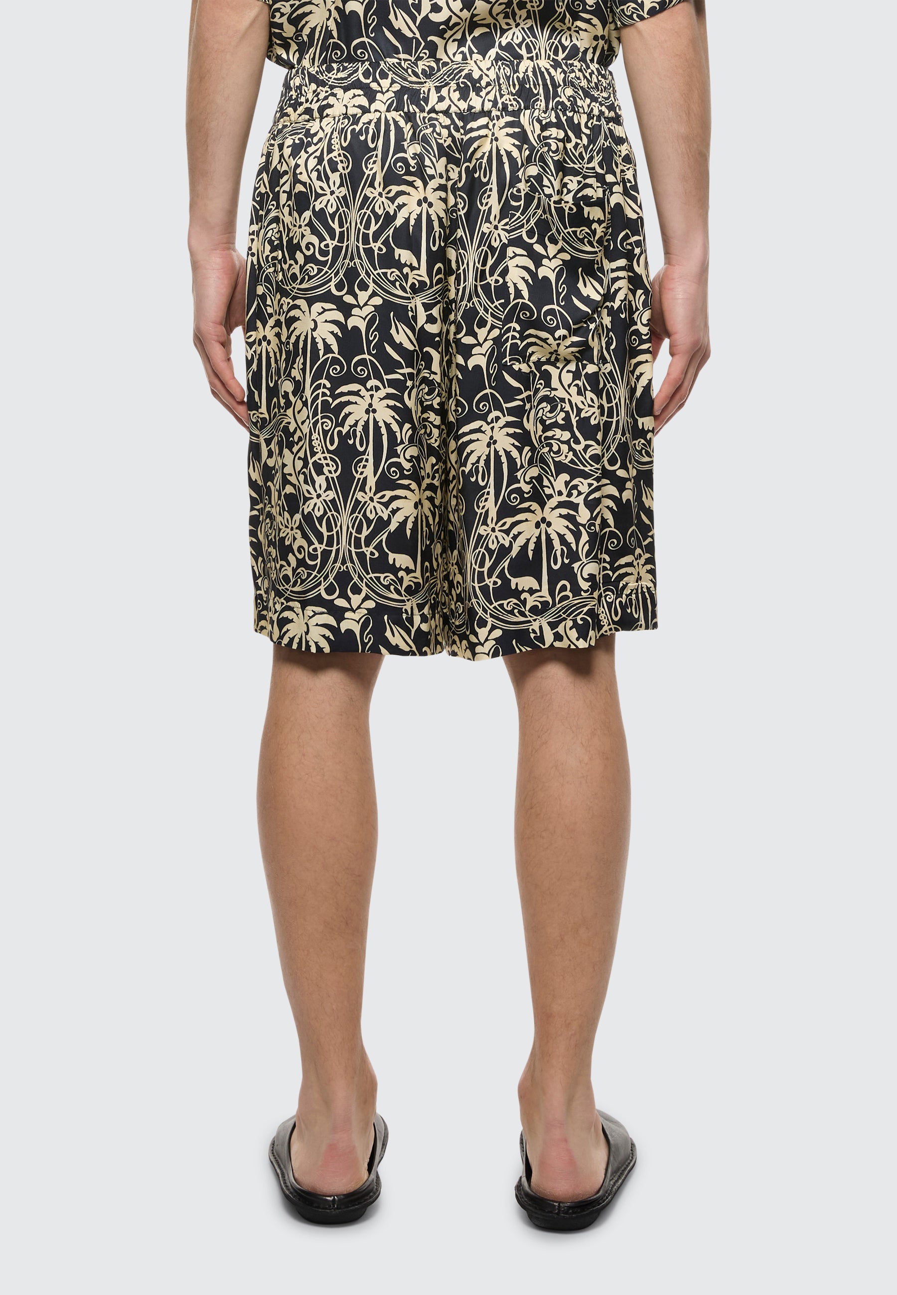 Lasciatevi conquistare da un’originale interpretazione del guardaroba estivo con questi bermuda di Laneus. Con gamba larga,il modello presenta una tasca monofiletto in cucitura e vita alta arricciata. Presenta un pattern tropicale all over. Made in Italy. Il modello è alto 190 cm ed indossa una 48/M.